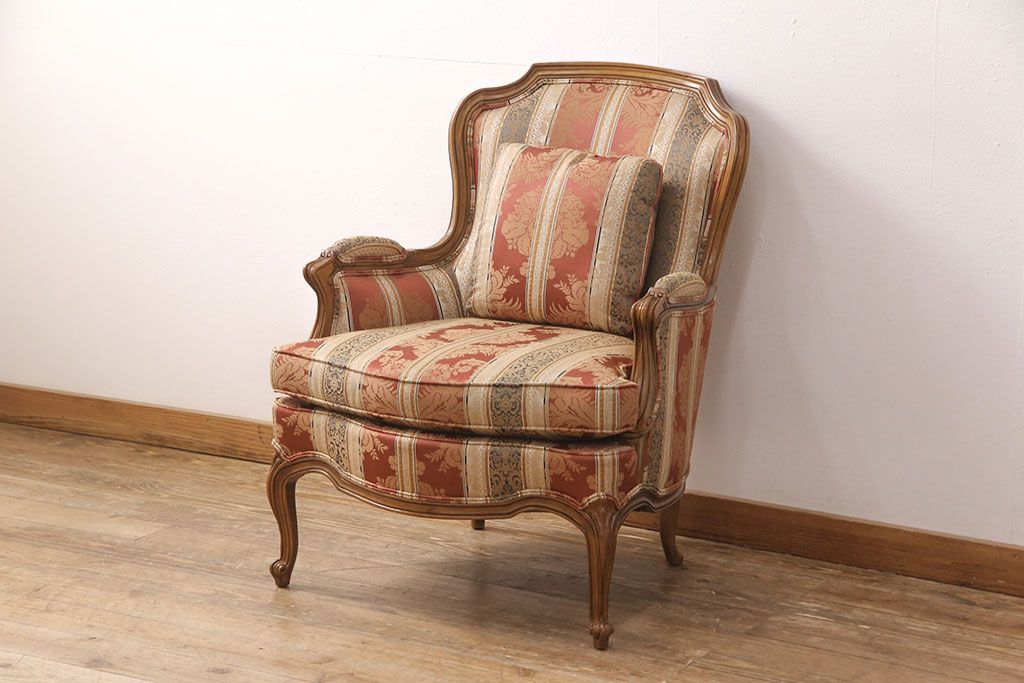 椅子・ベンチ> ラウンジチェア > 中古 美品 DREXEL HERITAGE(ドレクセルヘリテイジ) Upholstery(アップホルスタリー) エレガントな佇まいのラウンジチェア(一人掛けソファ、1P、アームソファ)(定価約59万円)(R-052095)
