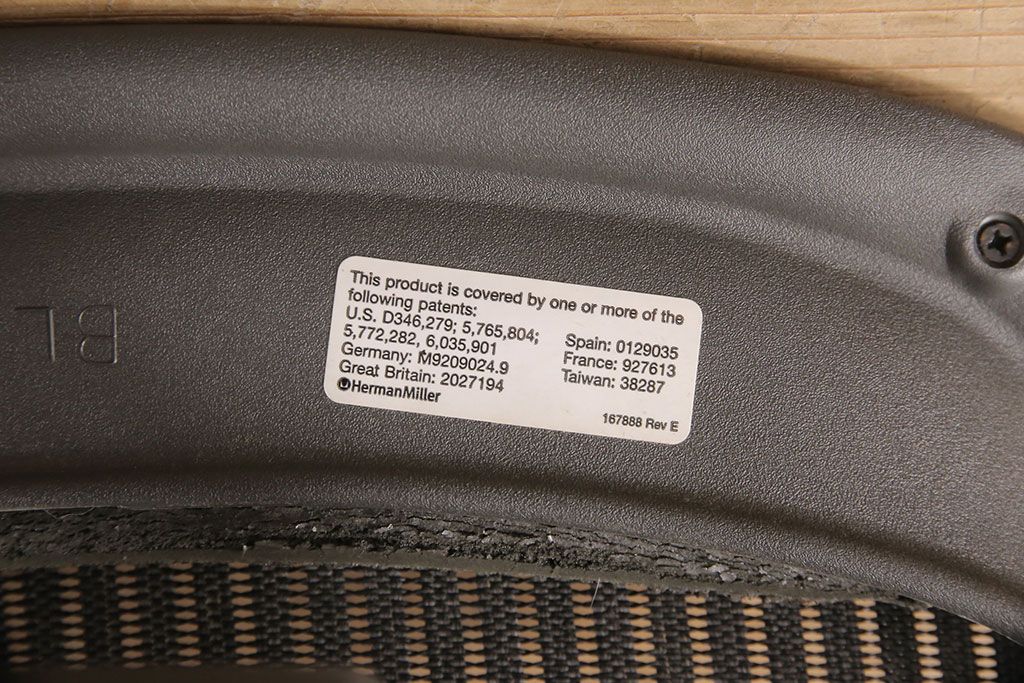 椅子・ベンチ> アームチェア > 中古 美品 Hermanmiller(ハーマンミラー社) ランバーサポート 座り心地を追求したアーロンチェア(オフィスチェア、アームチェア、ワークチェア)(R-052097)