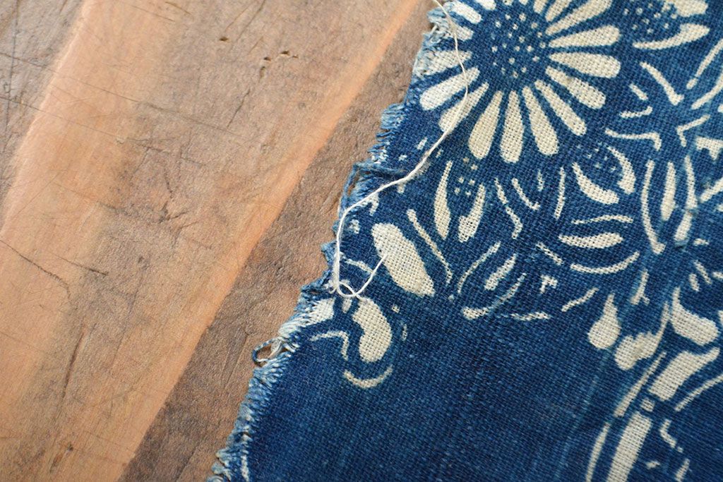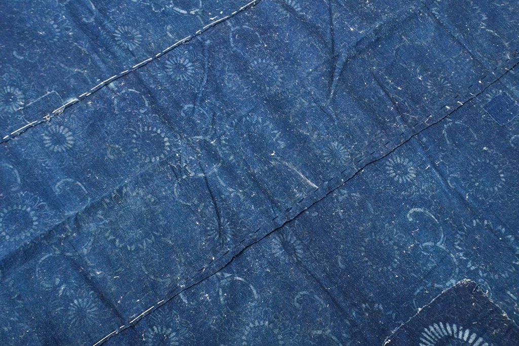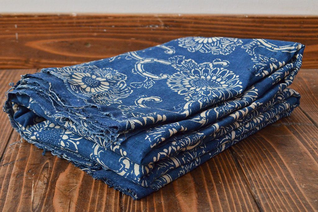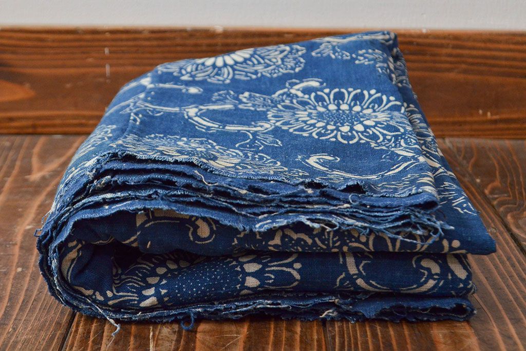明治〜大正 藍型染め木綿古布(布団皮、藍染)(R-052035)