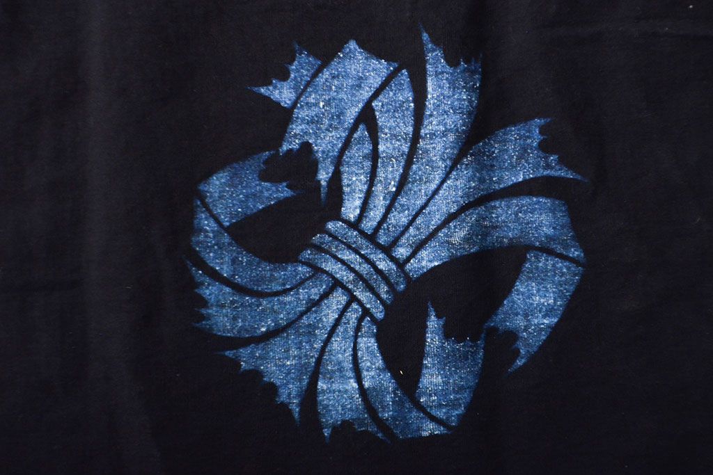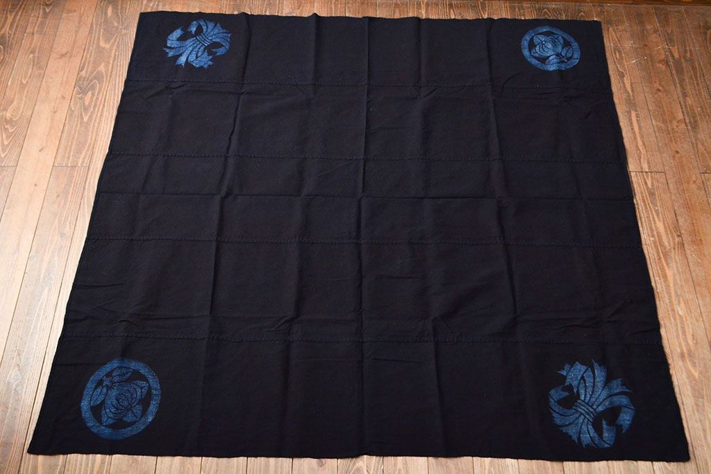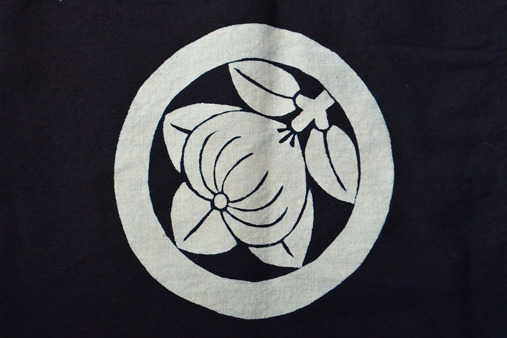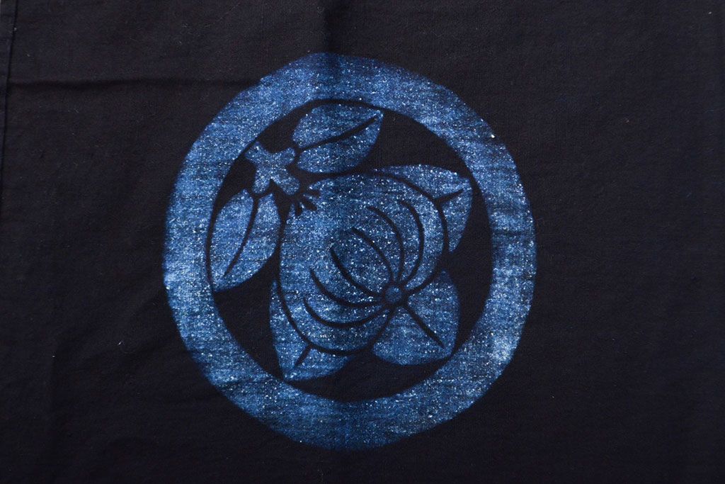 明治〜大正 古い家紋入り藍染め 木綿古布(R-052036)