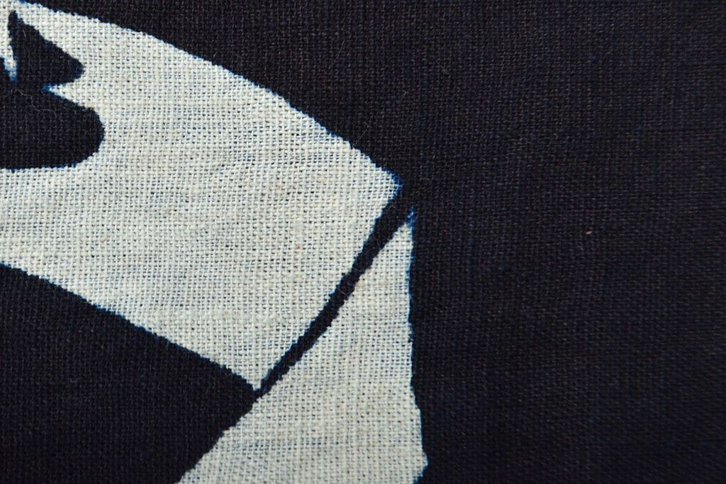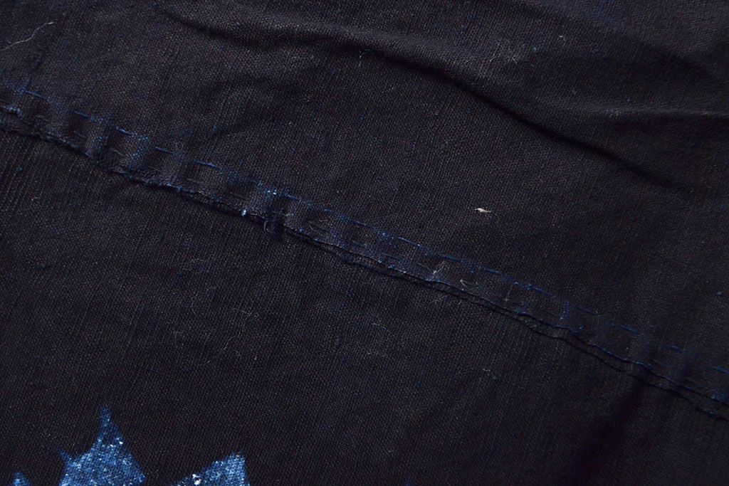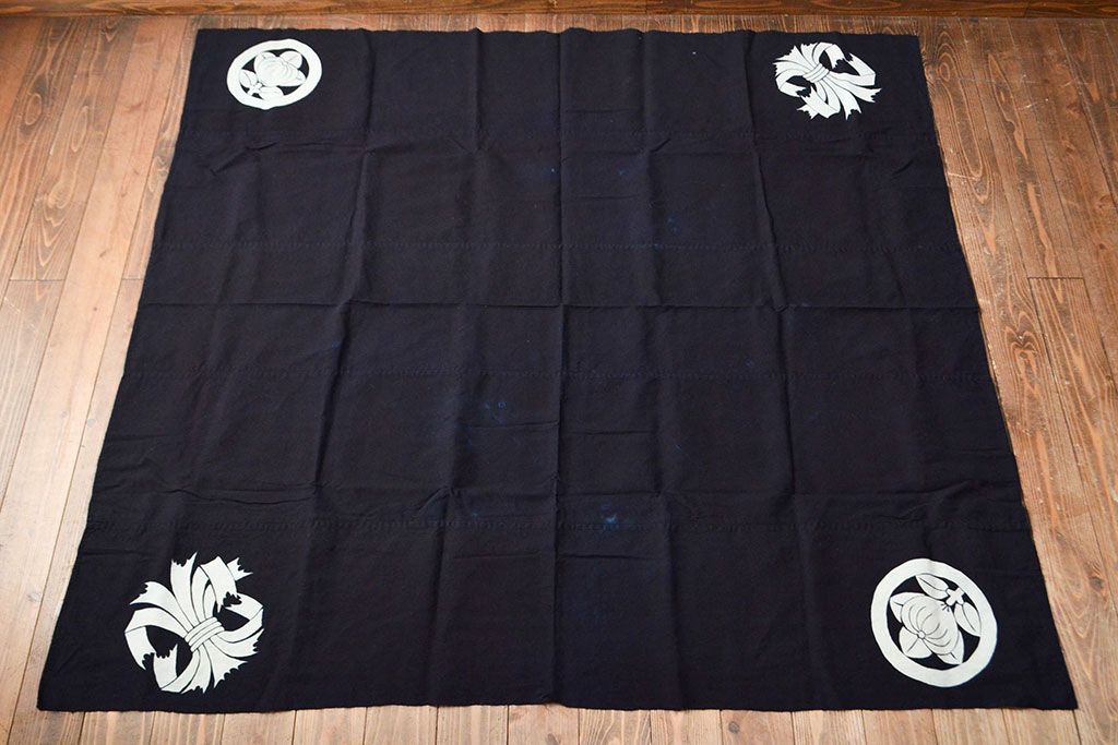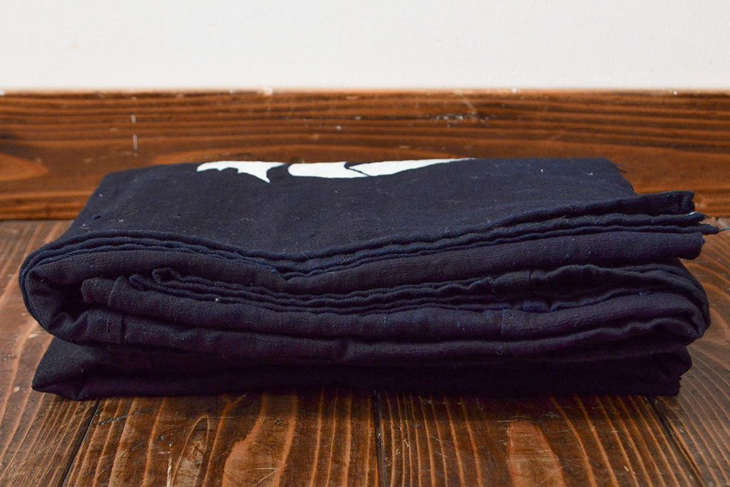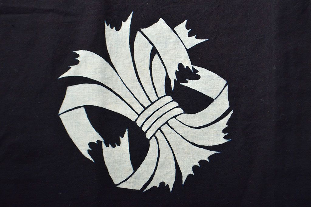 明治〜大正 古い家紋入り藍染め 木綿古布(R-052036)