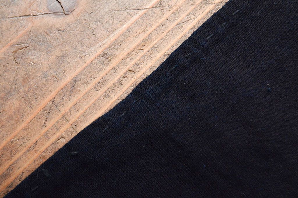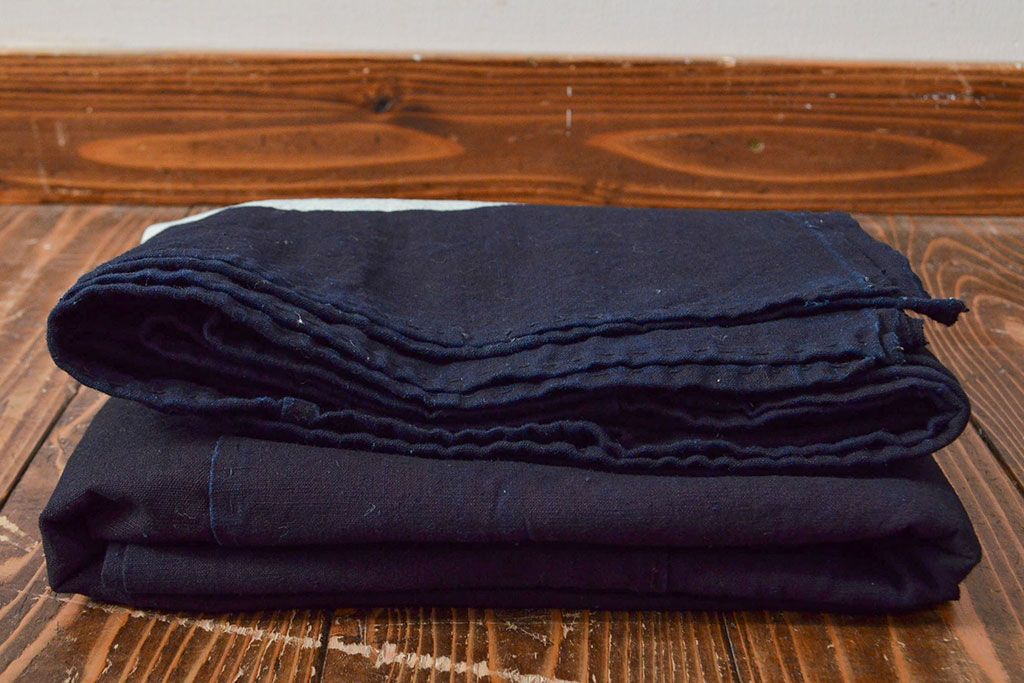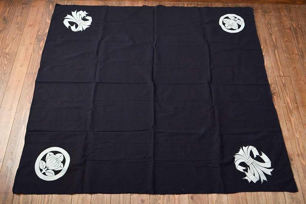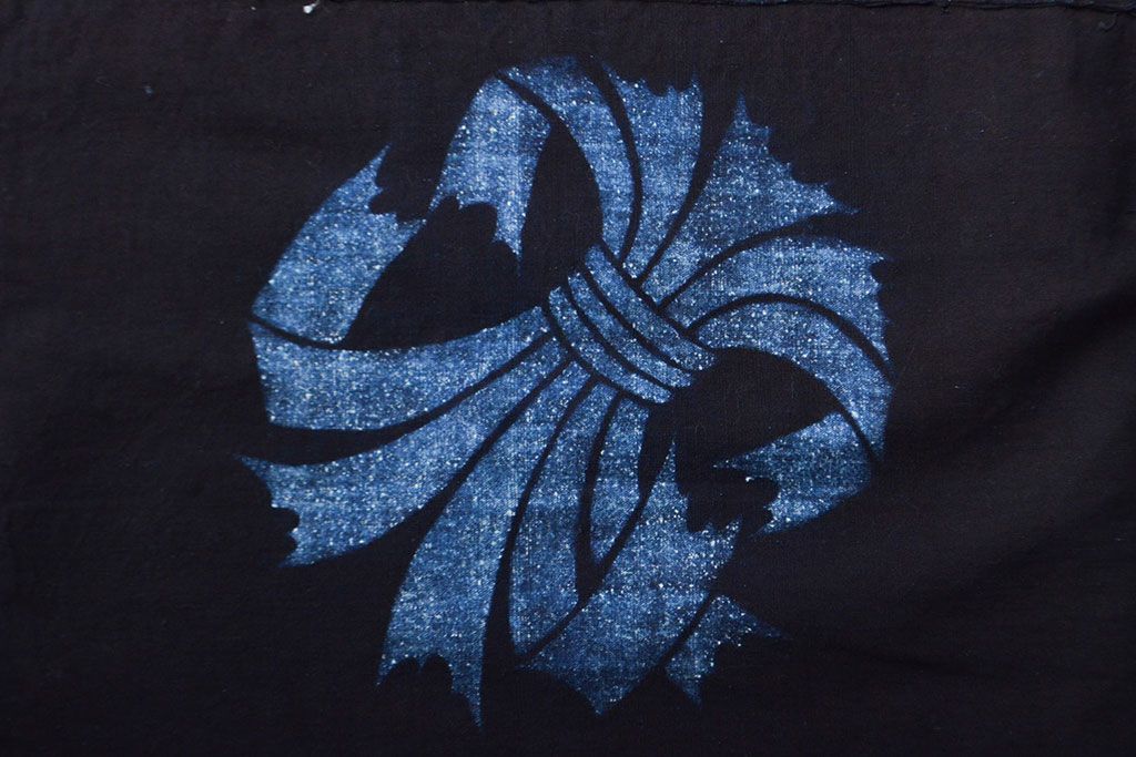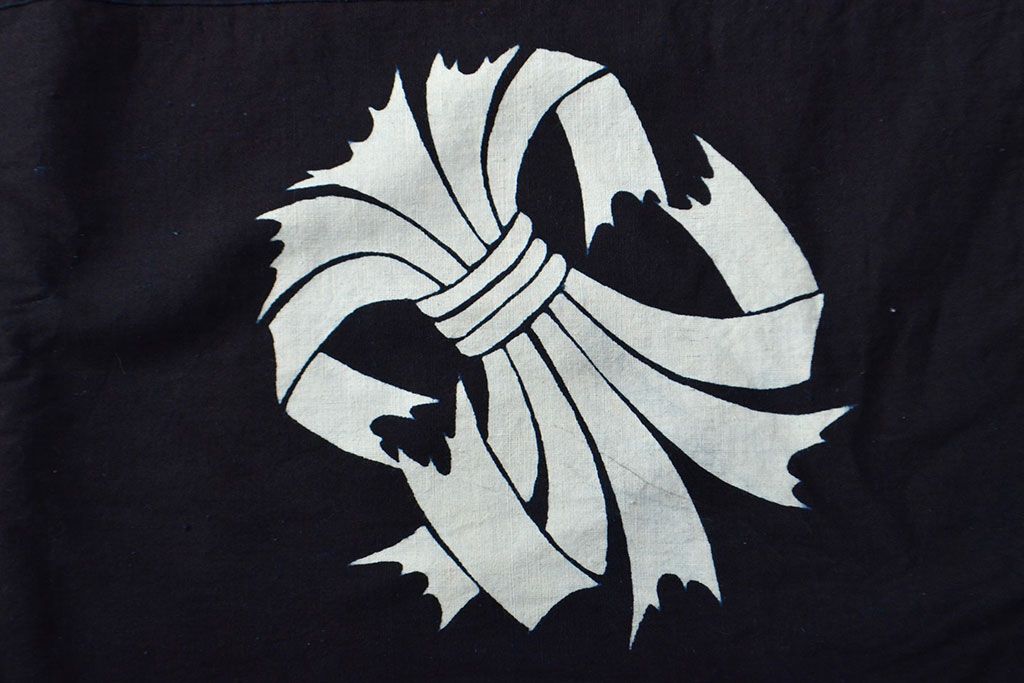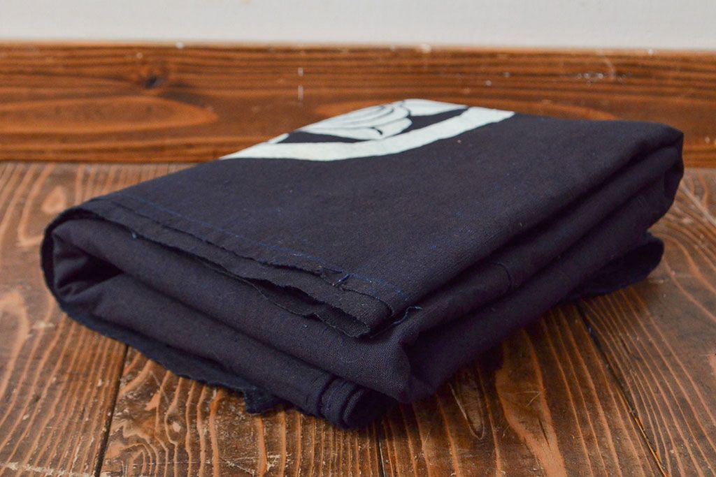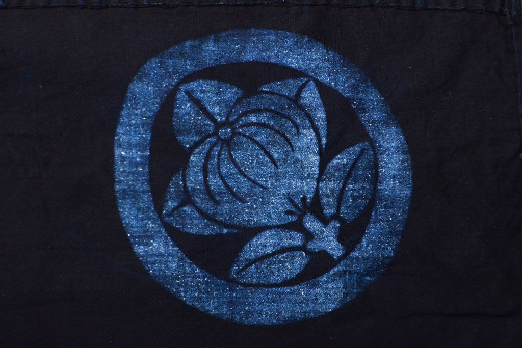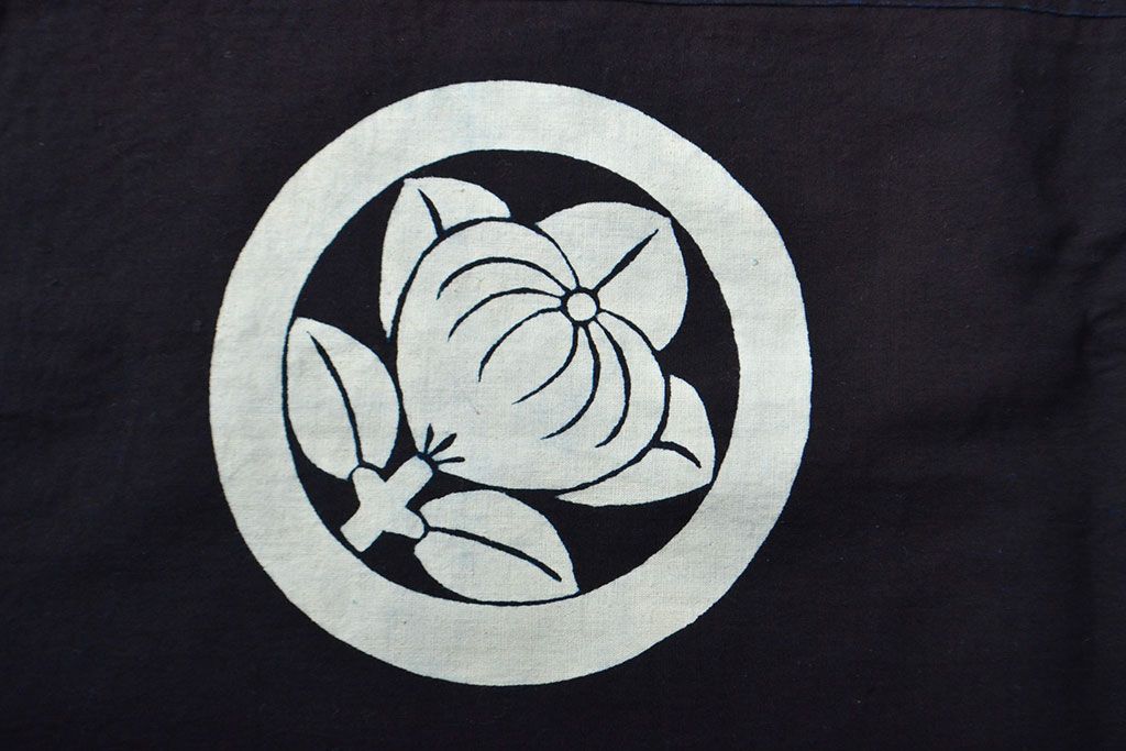 明治〜大正 古い家紋入り藍染め 木綿古布(R-052037)