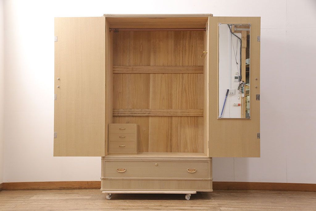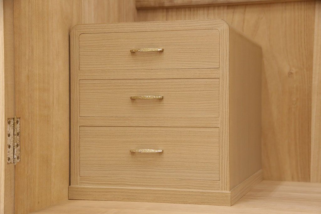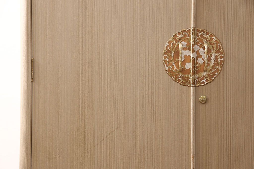 ラフジュ工房> ワードローブ・ロッカー> ワードローブ > 中古 美品 伝統工芸士・中沢和夫作 かくし付き 繊細な金具が上品な雰囲気を高める小引き出し付き加茂総桐箪笥(胴丸、総桐たんす、ワードローブ、衣装箪笥、和タンス、洋服タンス)(定価約100万円)(R-052182)