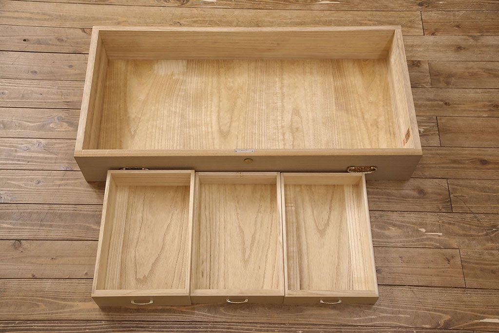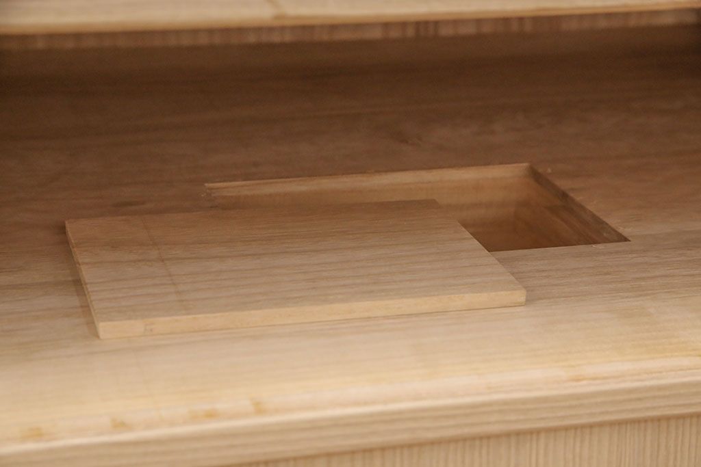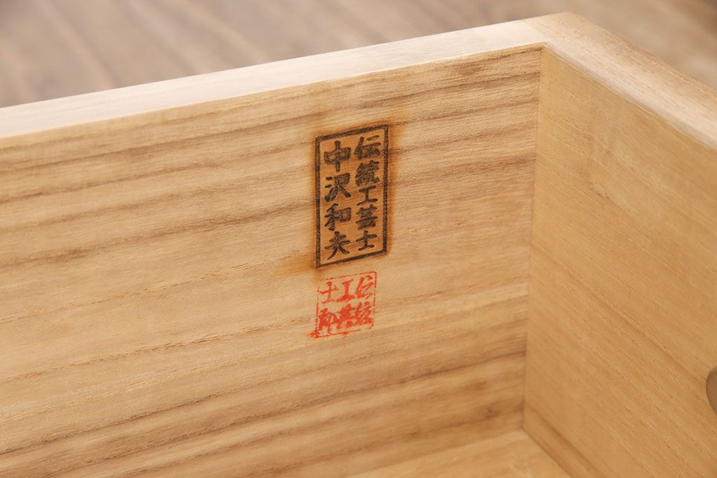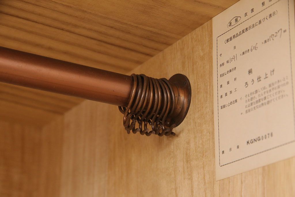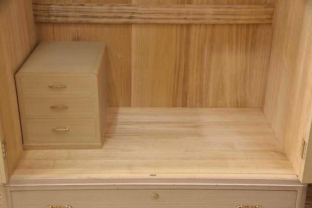 ラフジュ工房> 民芸家具 > 中古 美品 伝統工芸士・中沢和夫作 かくし付き 繊細な金具が上品な雰囲気を高める小引き出し付き加茂総桐箪笥(胴丸、総桐たんす、ワードローブ、衣装箪笥、和タンス、洋服タンス)(定価約100万円)(R-052182)