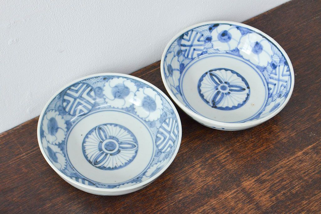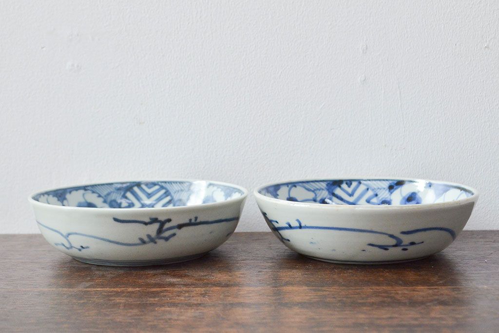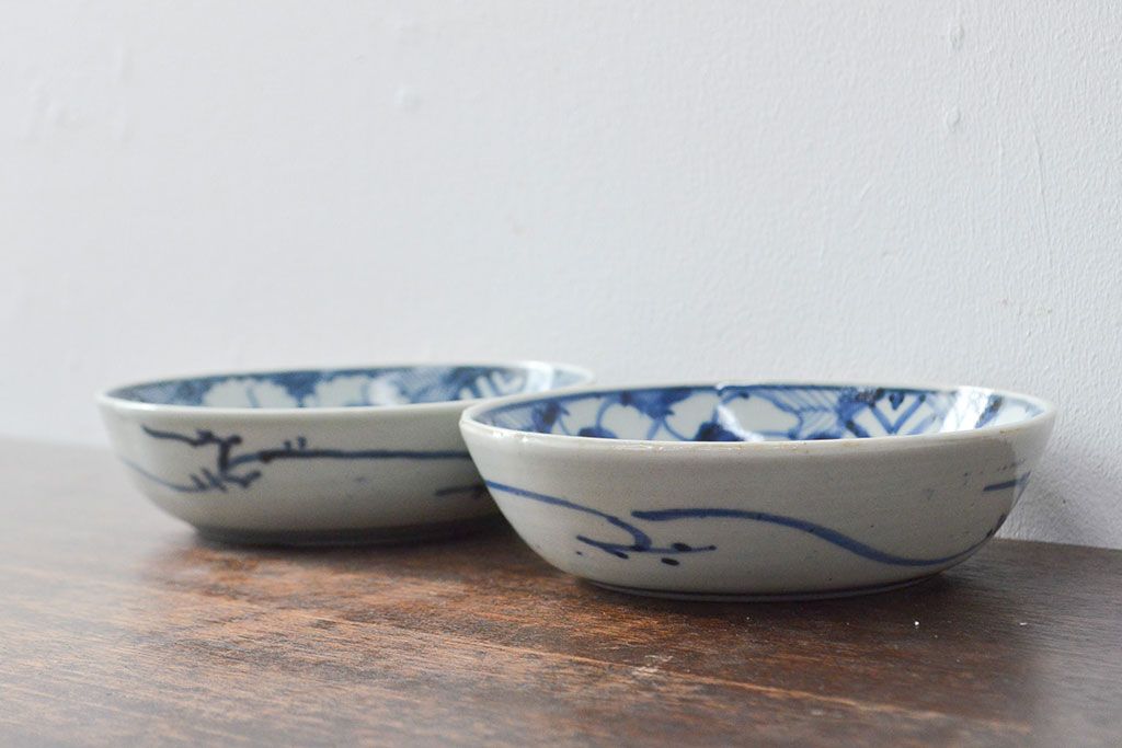 ラフジュ工房> 和食器・茶道具 > 江戸期 古伊万里 花文染付なます皿2枚(和食器)(R-052059)