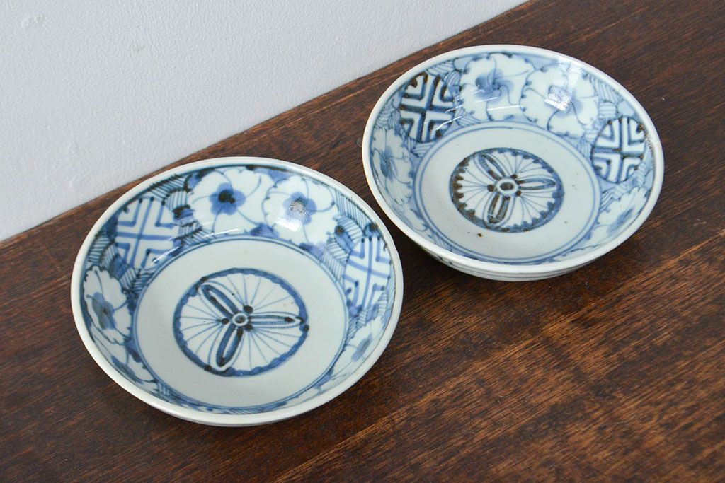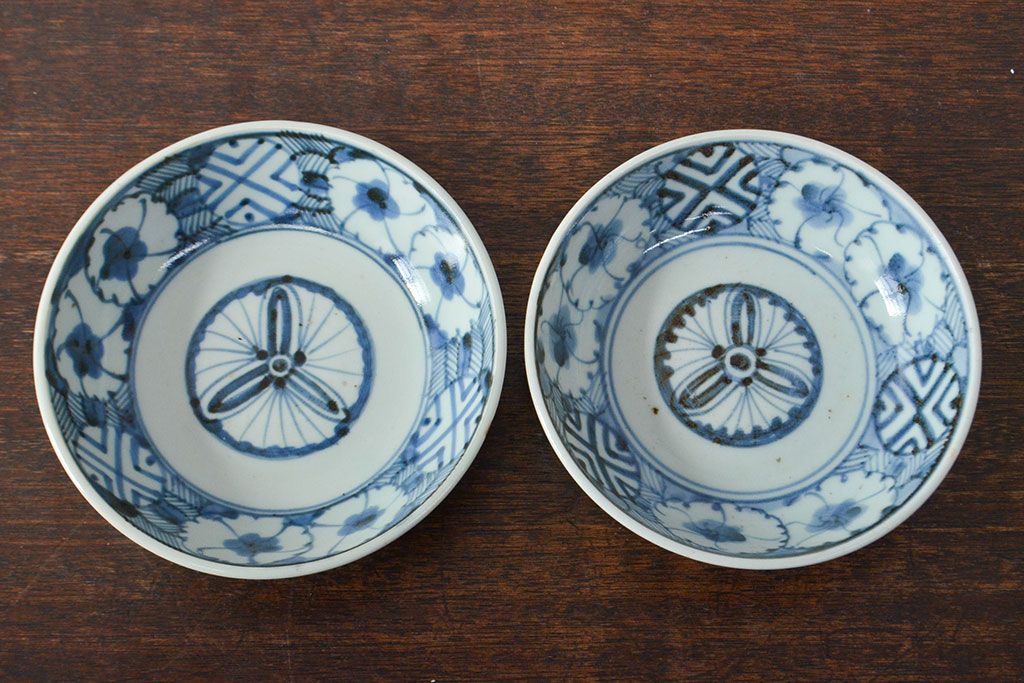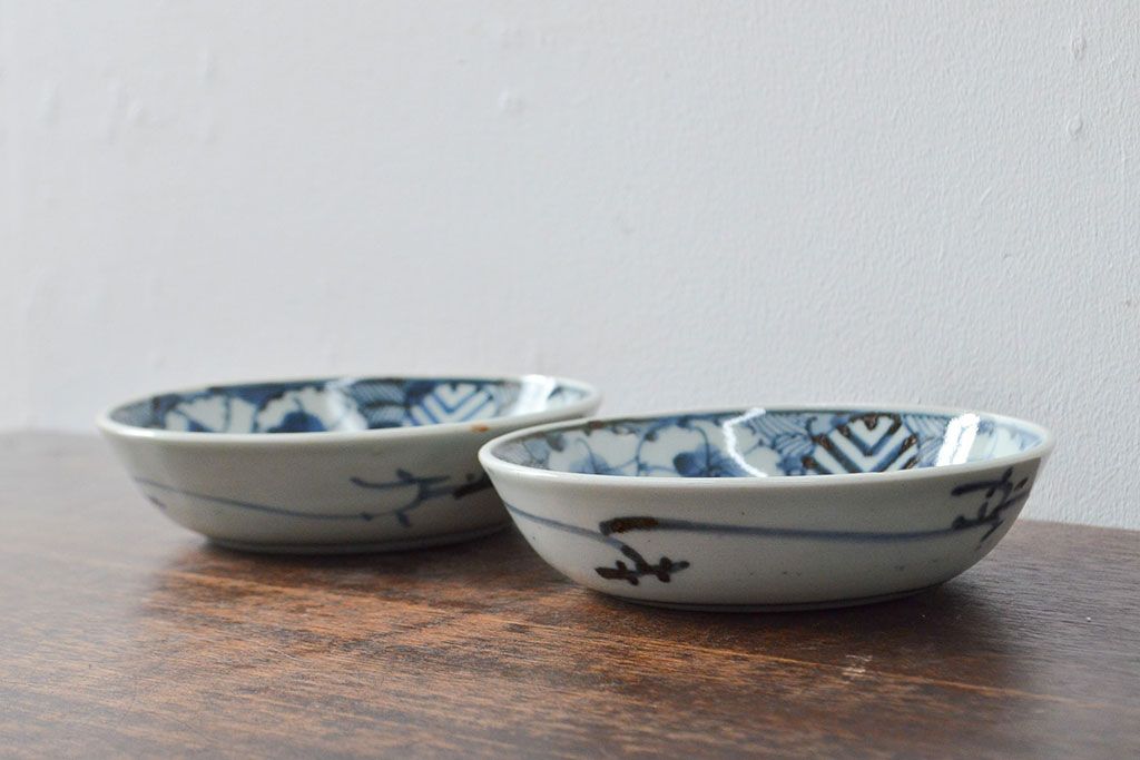 ラフジュ工房> 和食器・茶道具 > 江戸期 古伊万里 花文染付なます皿2枚(和食器)(R-052060)