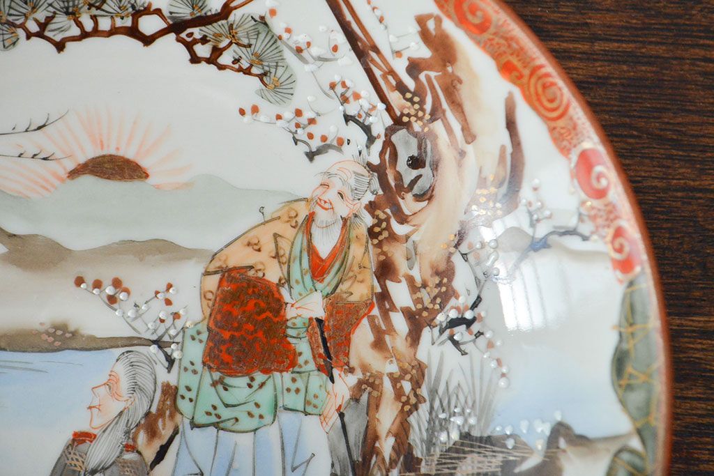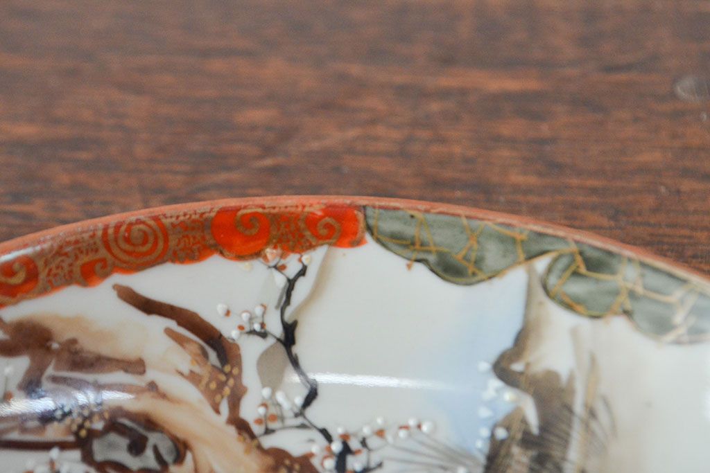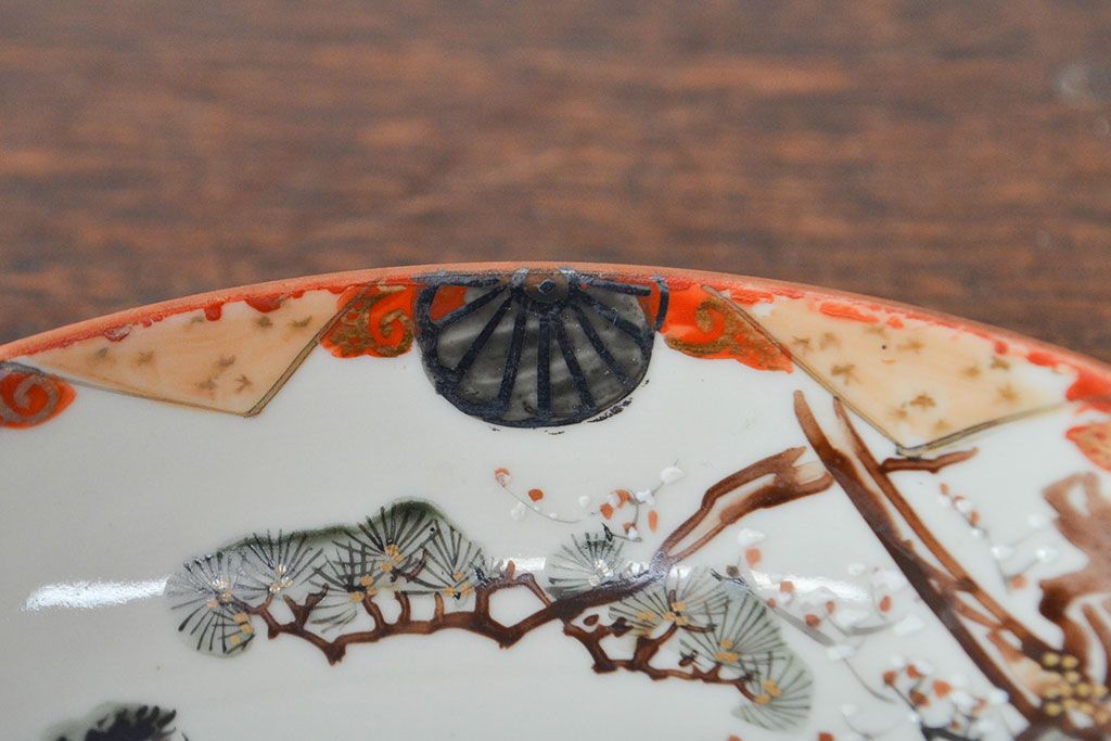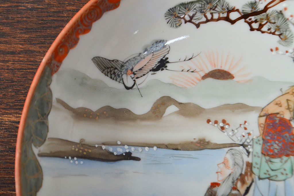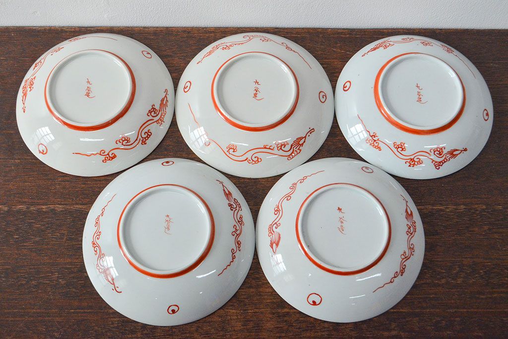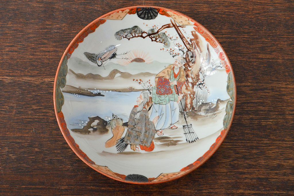 ラフジュ工房> 和食器・茶道具 > 明治期 九谷焼 鶴亀に高砂図 色絵 小皿5枚セット(和食器)(R-052061)