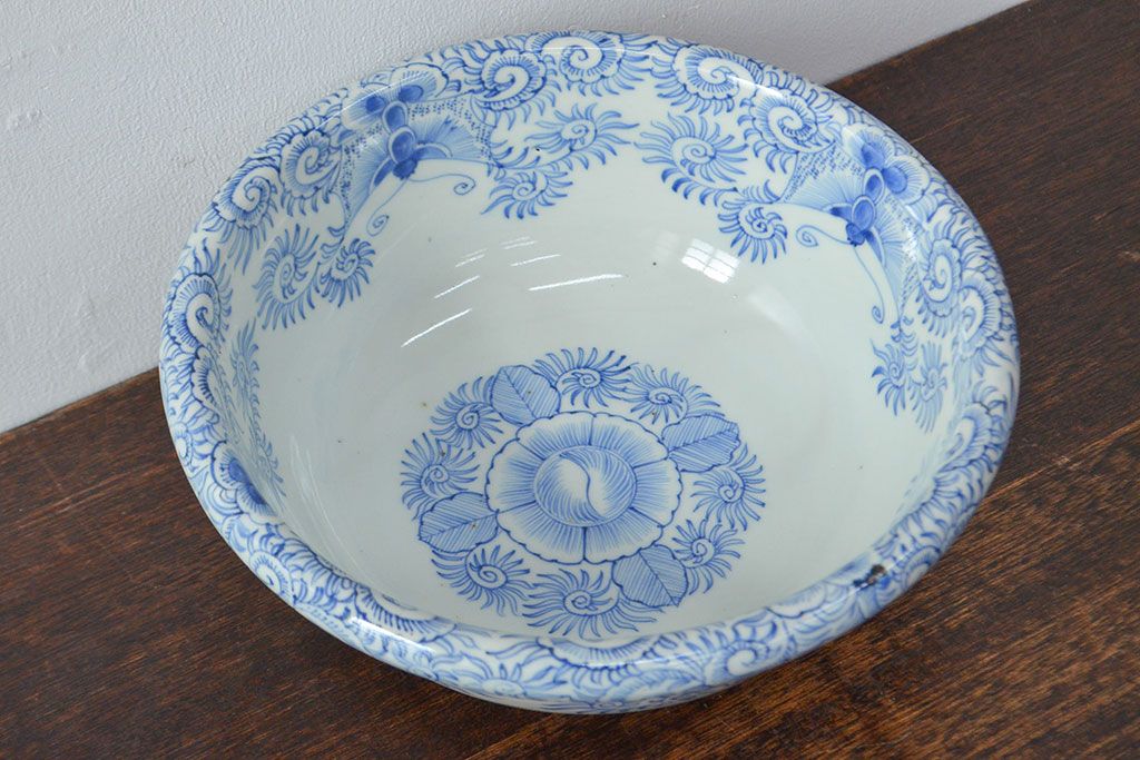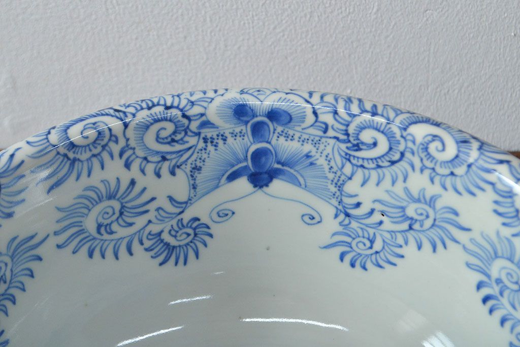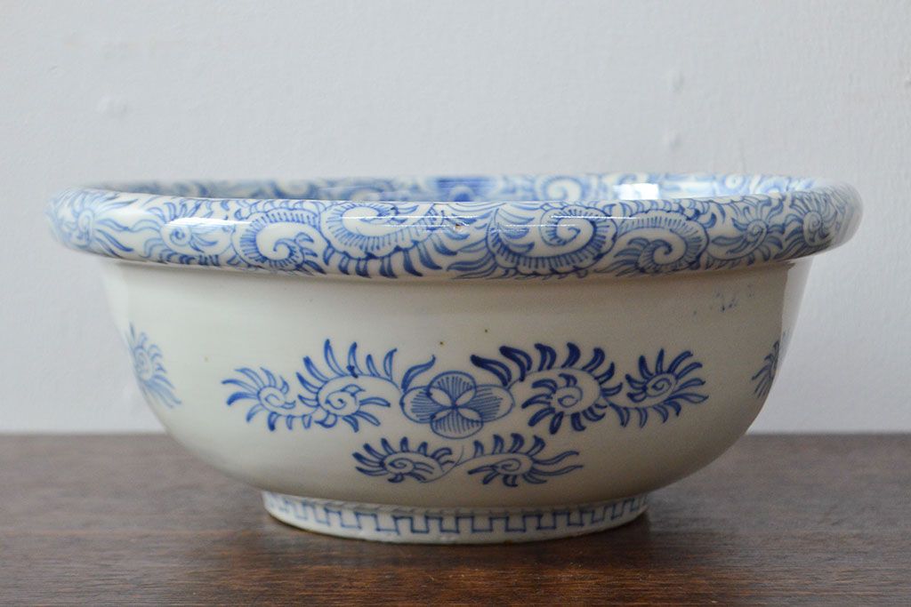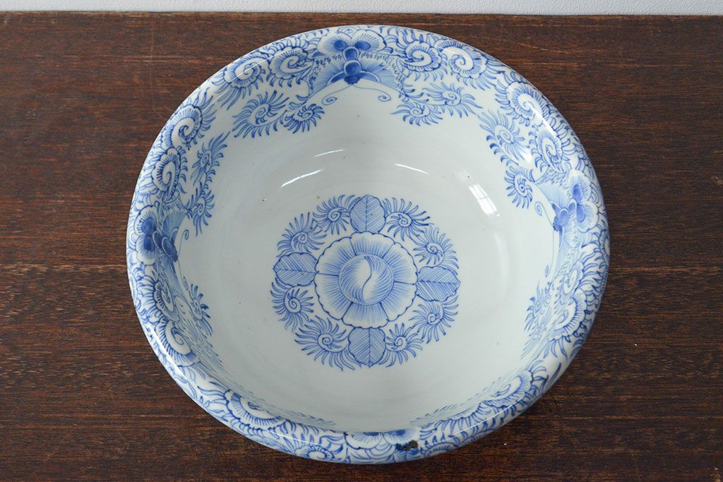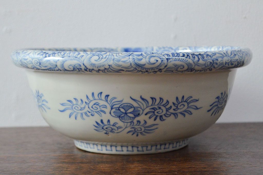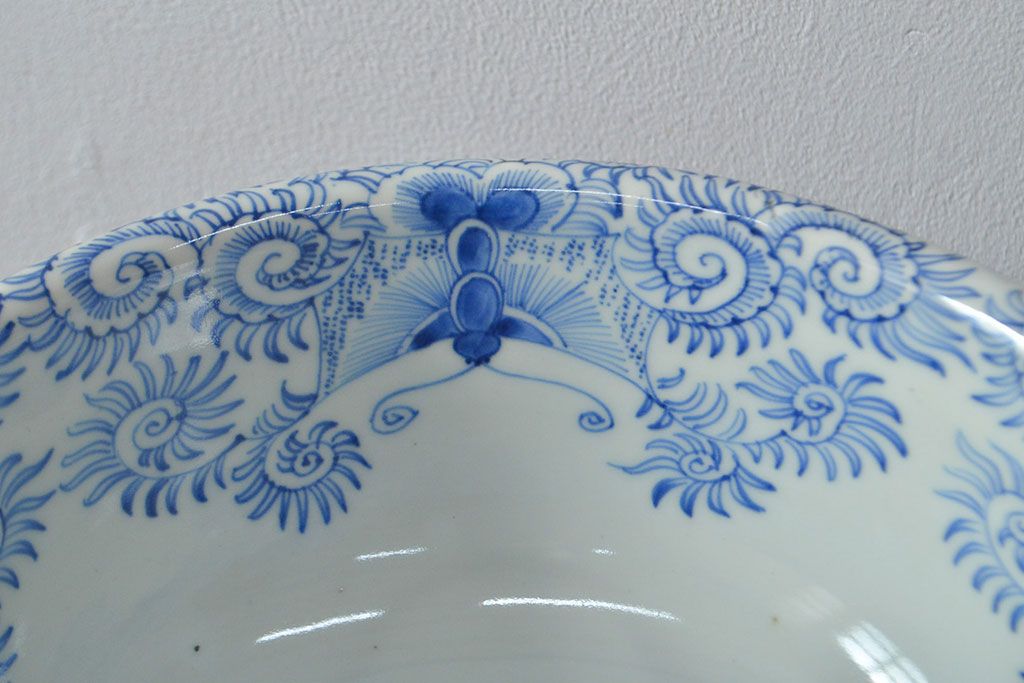 幕末〜明治 伊万里焼 線描き染付 深鉢(深皿、和食器)(R-052064)