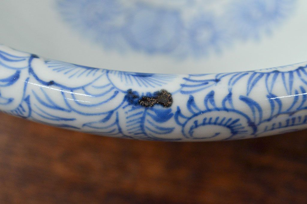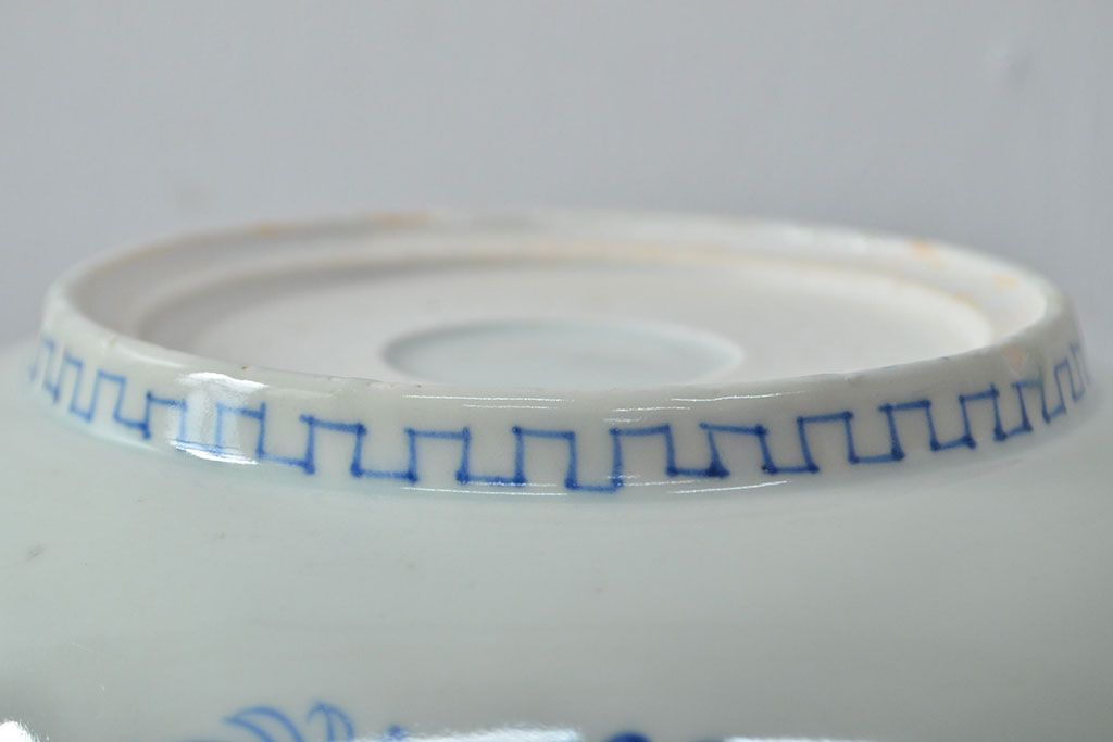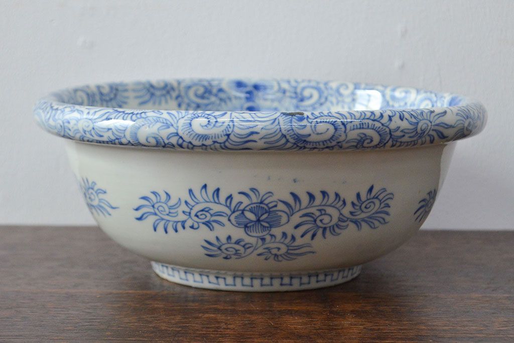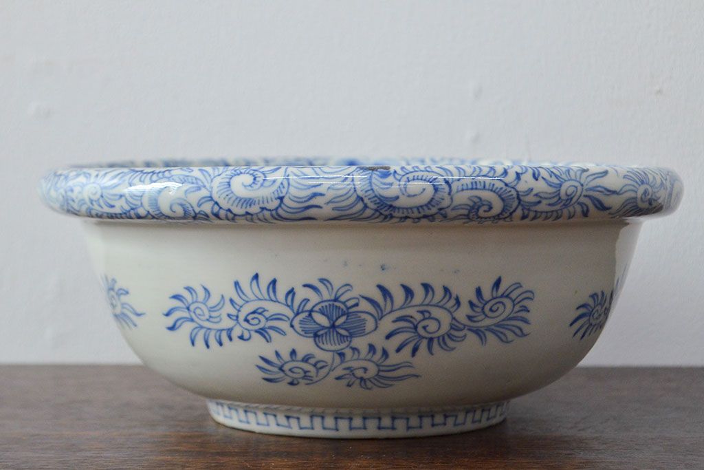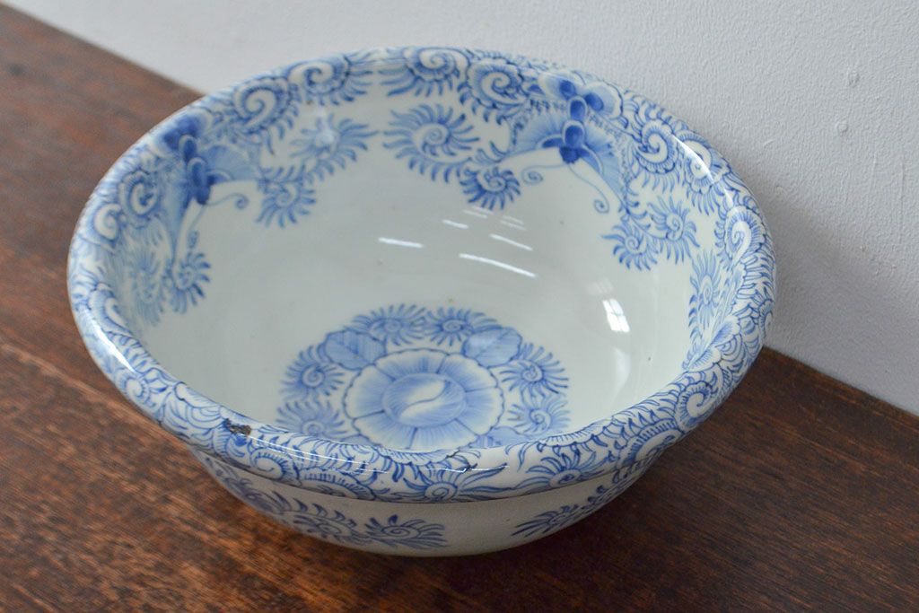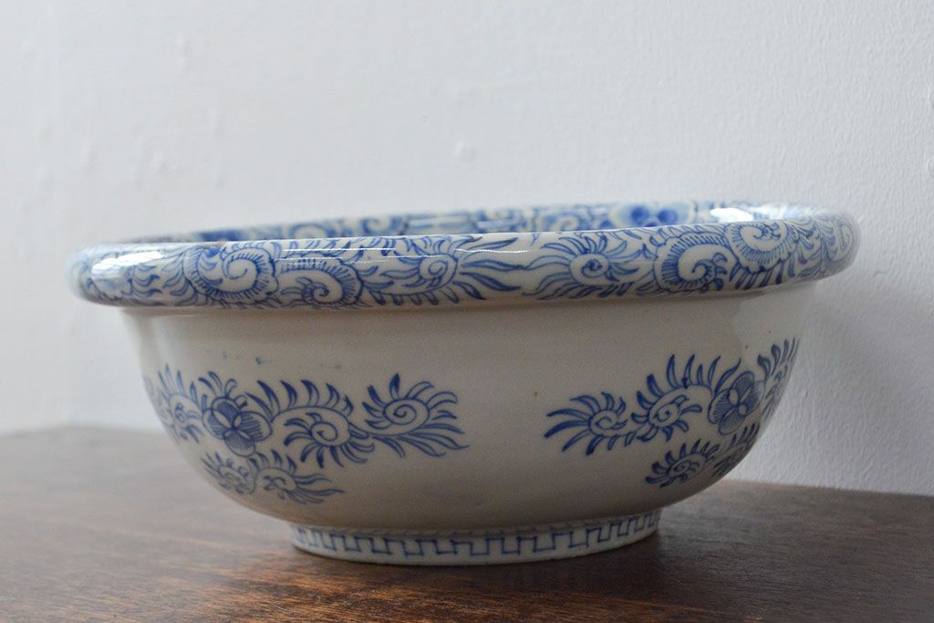 幕末〜明治 伊万里焼 線描き染付 深鉢(深皿、和食器)(R-052064)