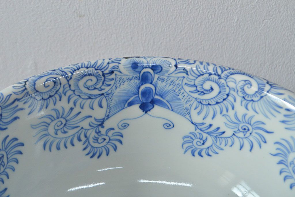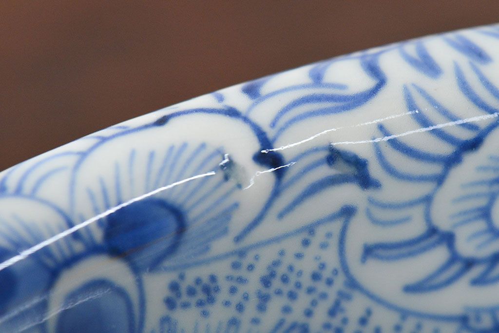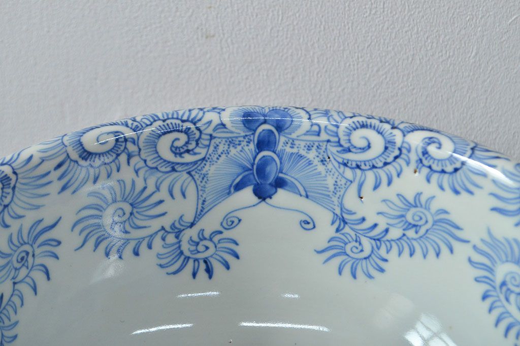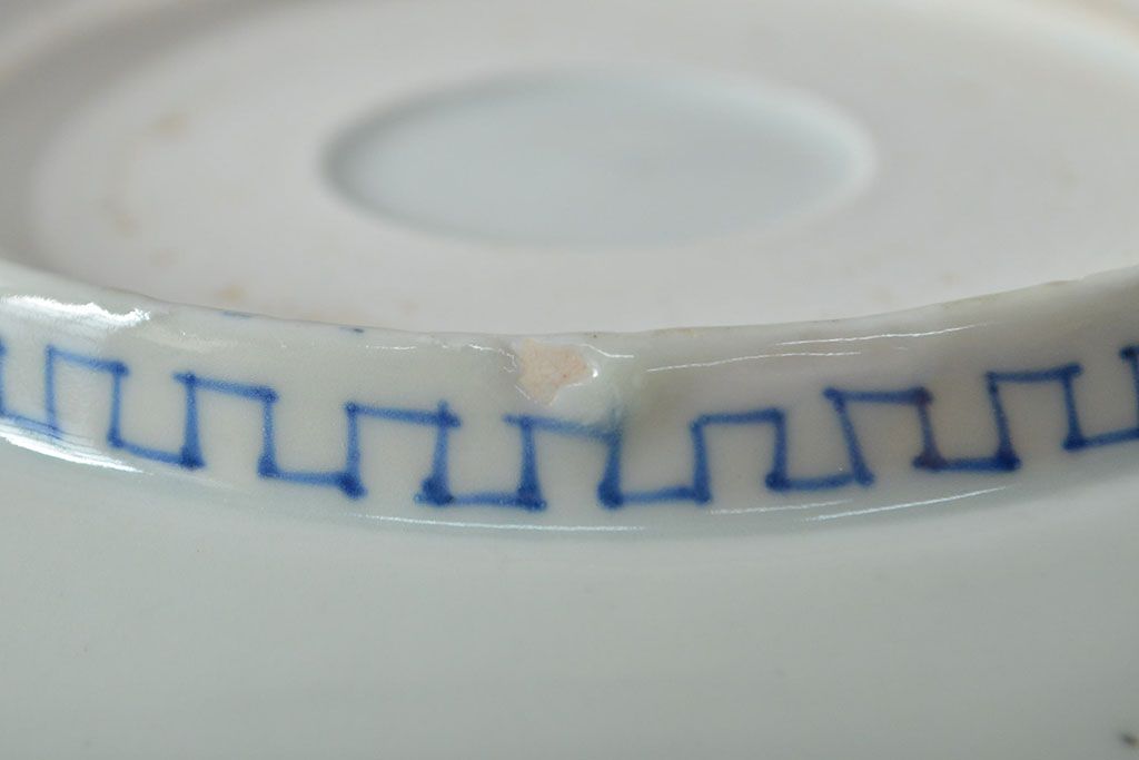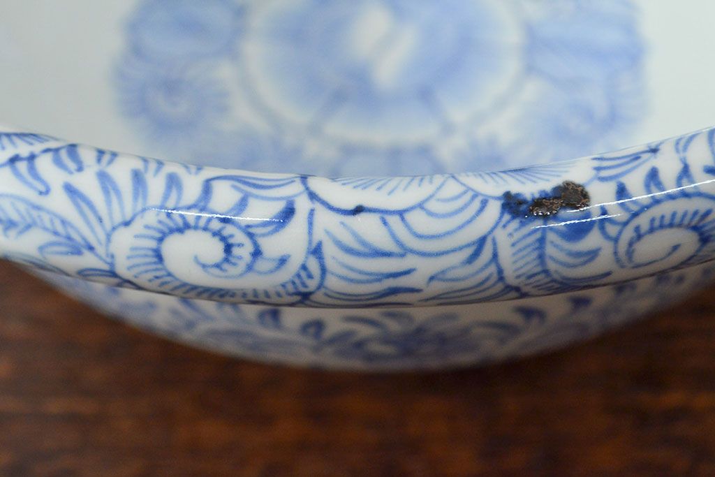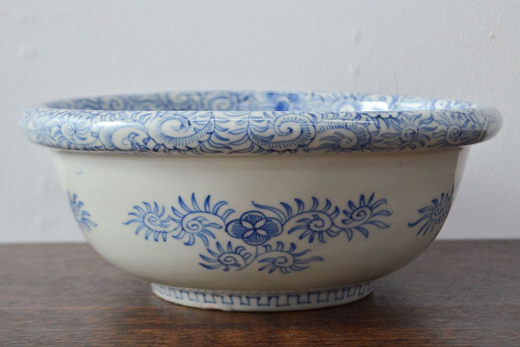 幕末〜明治 伊万里焼 線描き染付 深鉢(深皿、和食器)(R-052064)