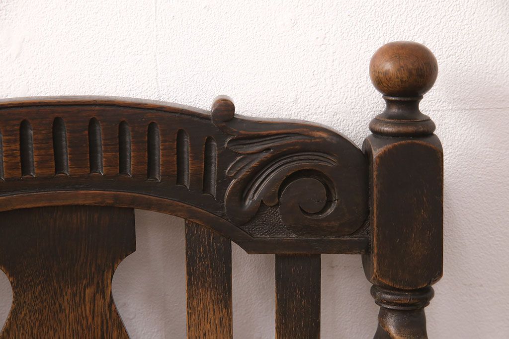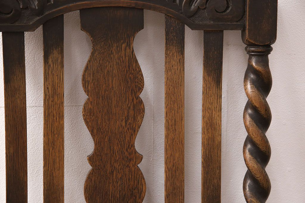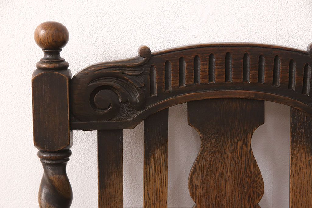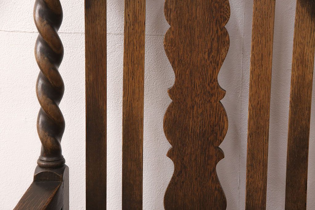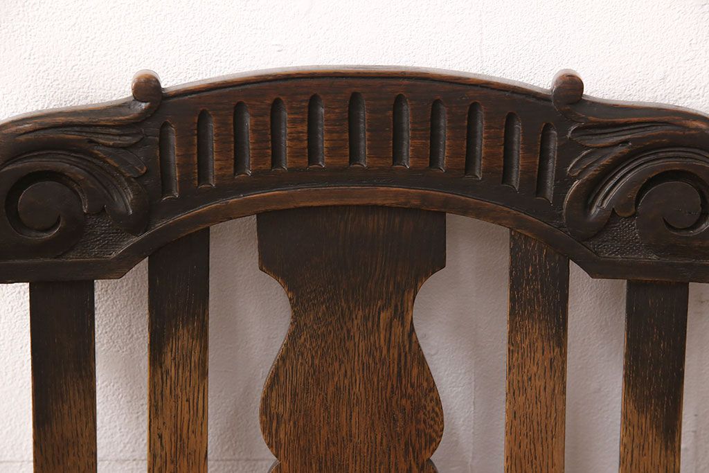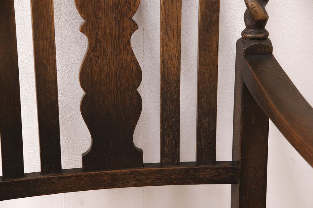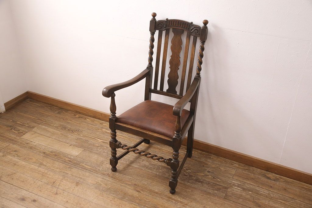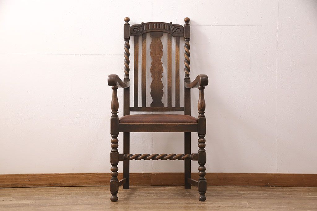 椅子・ベンチ> ダイニングチェア > イギリスアンティークのアームチェアをリペア&カスタム!座面の張り替えを行い、現状に近しい色味に着色し仕上げ。(椅子、ダイニングチェア)