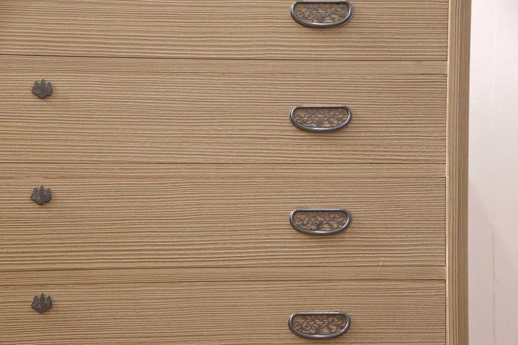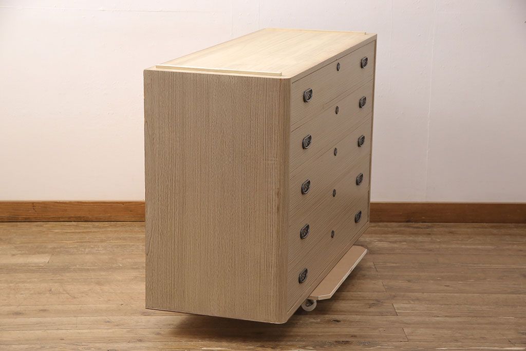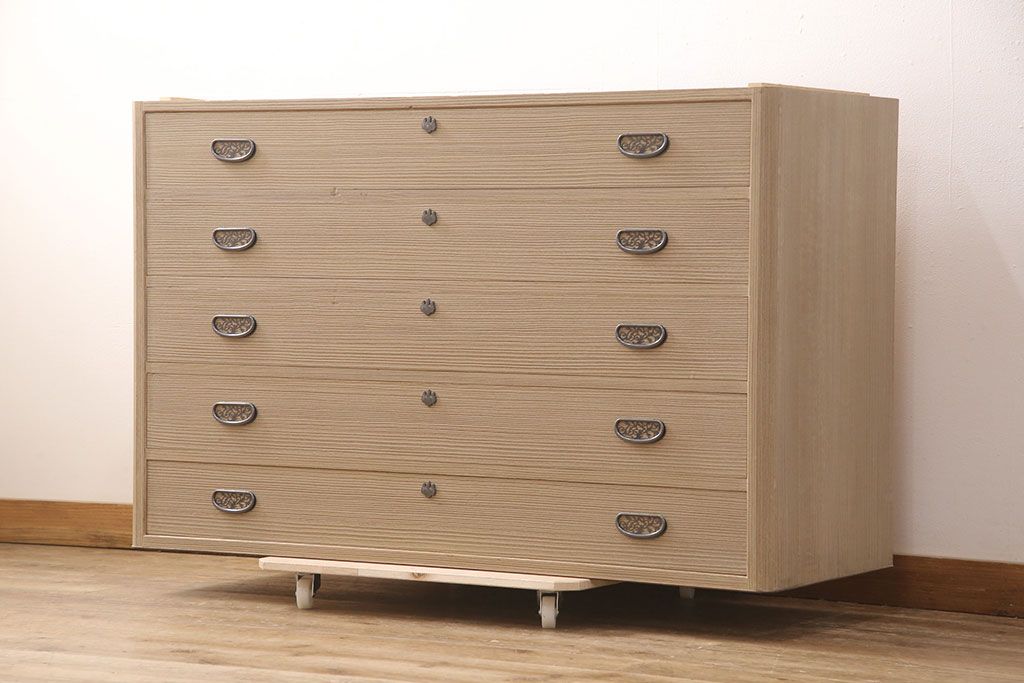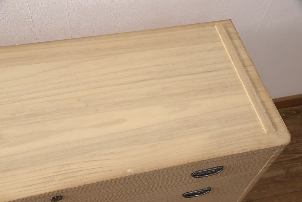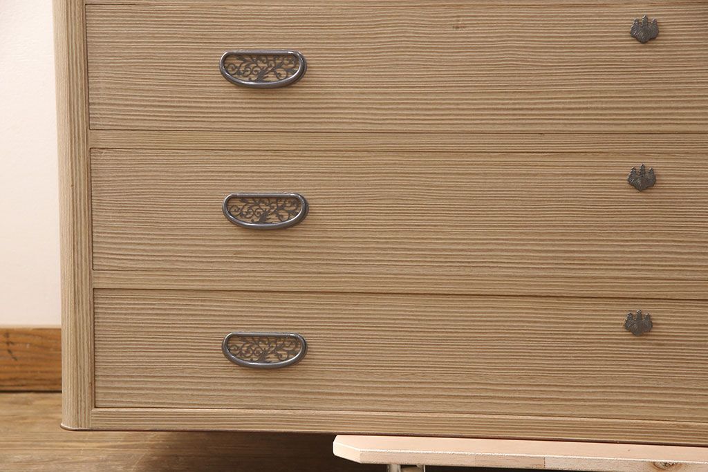 こちらのお品は脚(ブナ材)、もしくは台輪(国産桐材)を新たに取り付けた状態での販売となります(料金込み)。ご希望の方をお選びください。 脚にはブナ材を使用します。桐箪笥本体とは材質が異なるため、色や質感に差が生じます。予めご容赦ください。