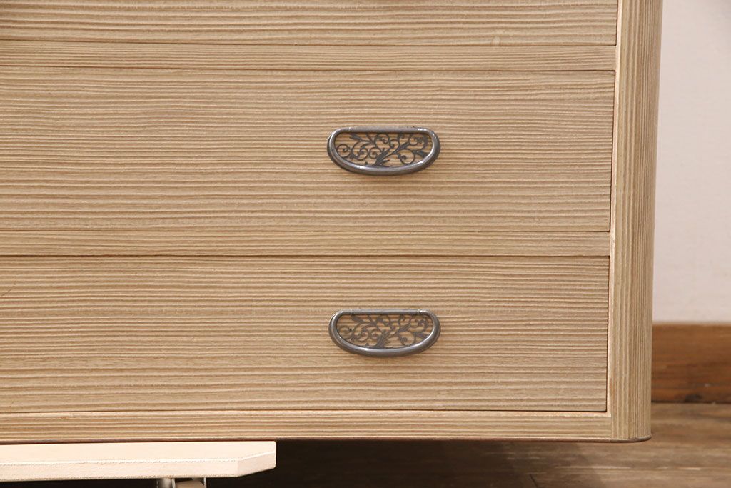 中古 美品 国産 天板・脚または台輪リメイク 素朴で温かな木肌が魅力の総桐箪笥・中段(胴丸、総桐たんす、桐タンス、ローボード、引き出し、ローチェスト)(R-052403)です。