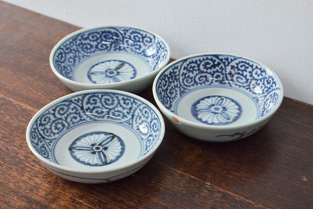 ラフジュ工房> 和食器・茶道具 > 江戸期 古伊万里 蛸唐草文染付 なます皿3枚セット(中皿、和食器)(R-052066)