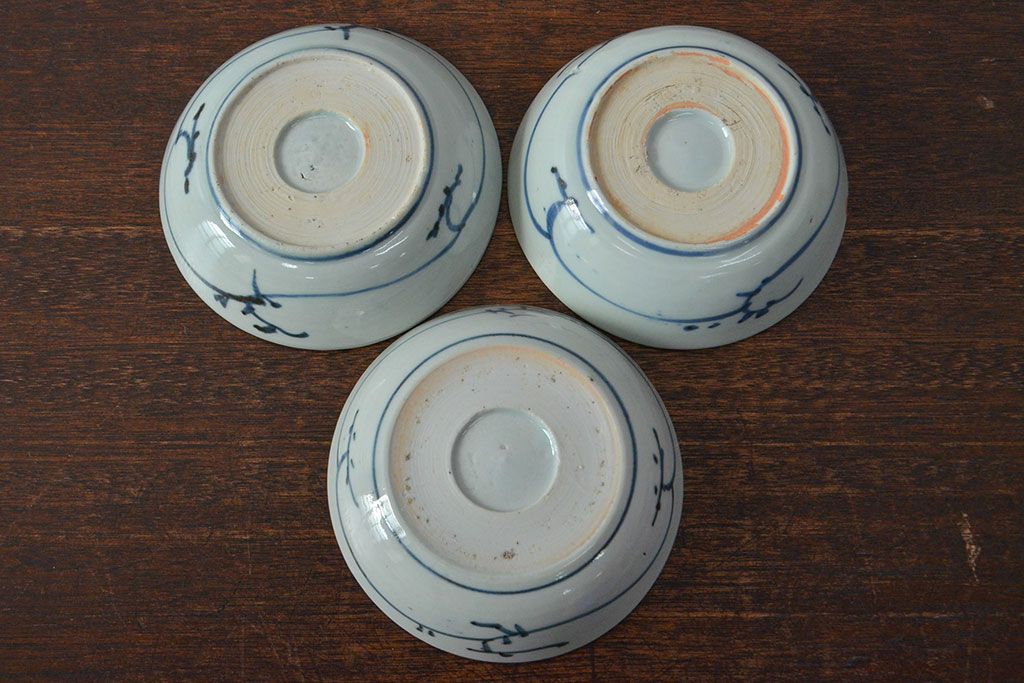 ラフジュ工房> 骨董・美術品> 骨董-陶磁器 > 江戸期 古伊万里 蛸唐草文染付 なます皿3枚セット(中皿、和食器)(R-052066)