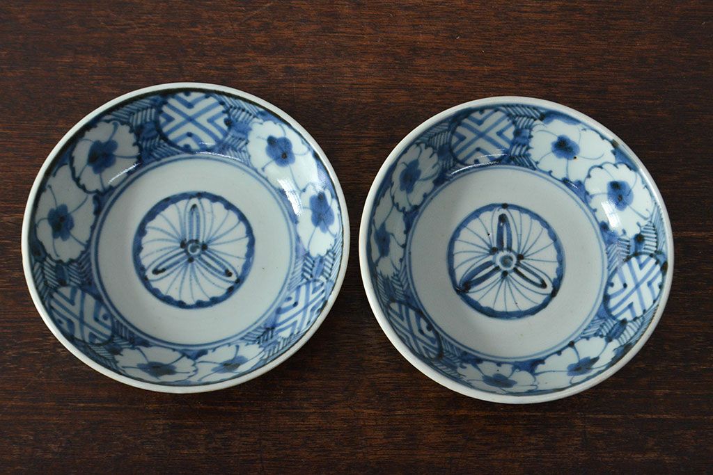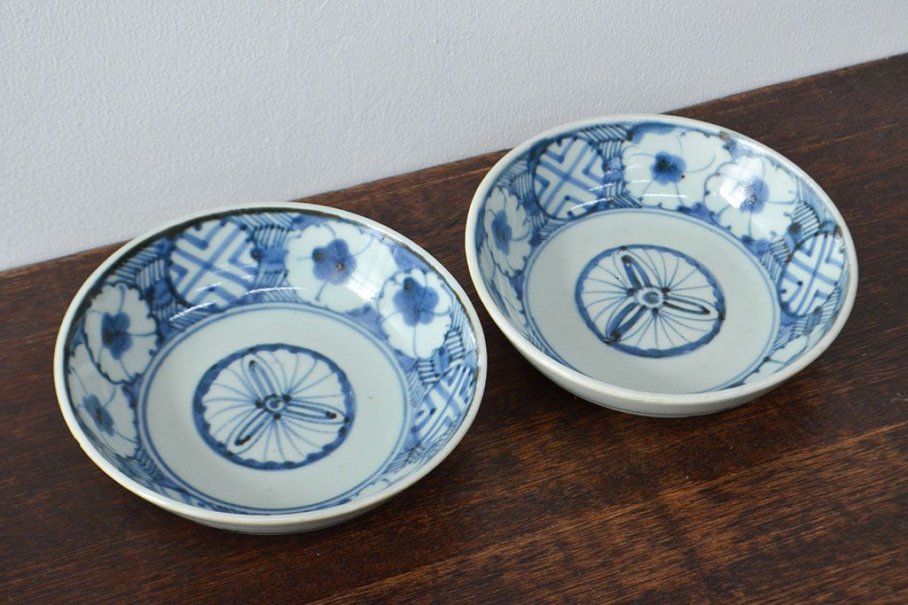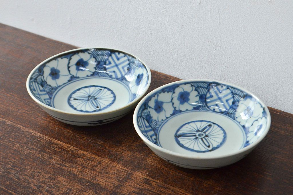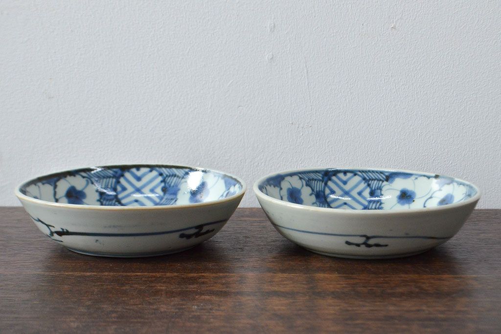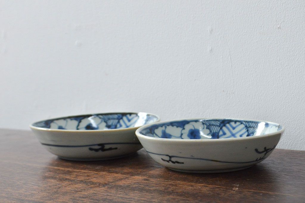 ラフジュ工房> 和食器・茶道具 > 江戸期 古伊万里 花文染付なます皿2枚(和食器)(R-052067)
