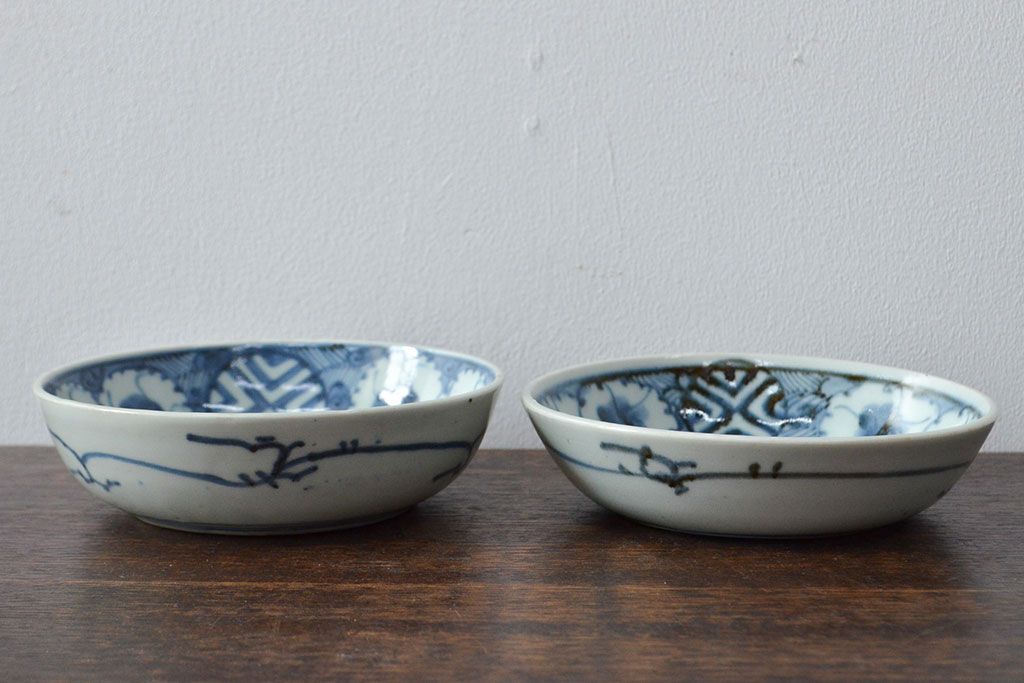 江戸期 古伊万里 花文染付なます皿2枚(和食器)(R-052068)