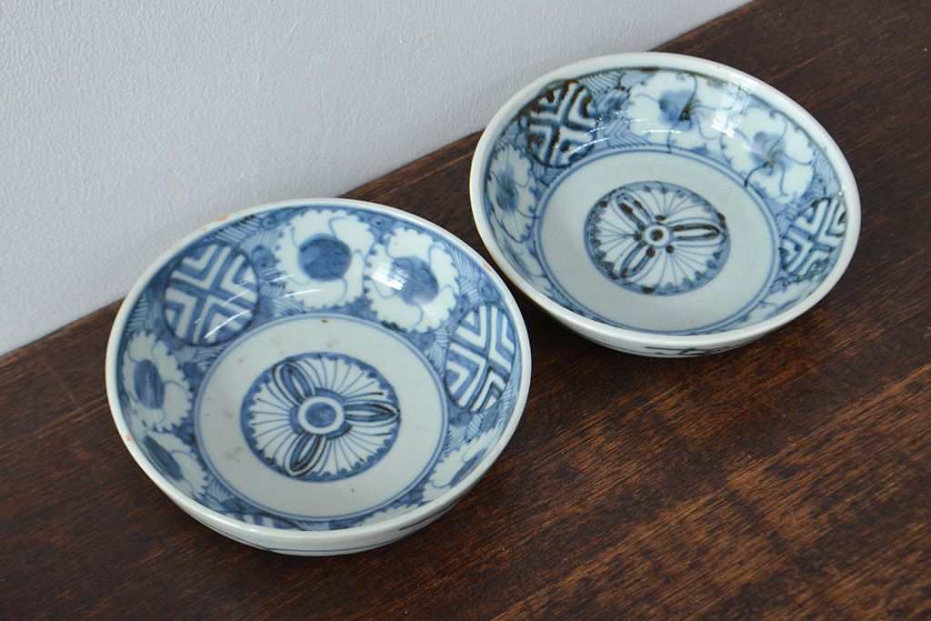 ラフジュ工房> 和食器・茶道具 > 江戸期 古伊万里 花文染付なます皿2枚(和食器)(R-052068)