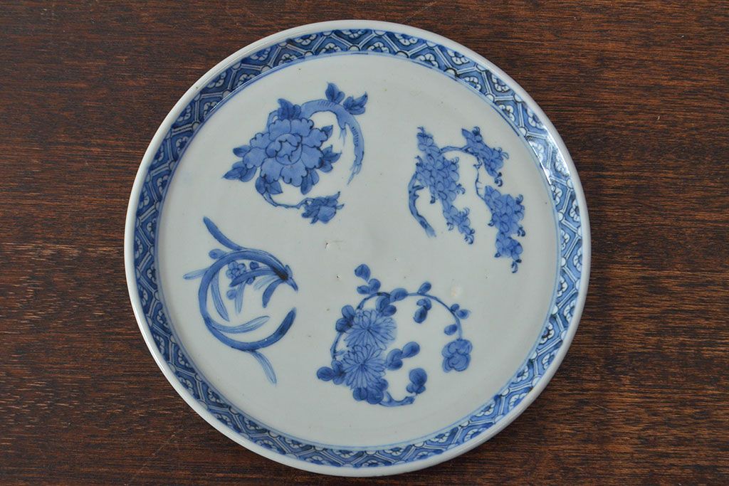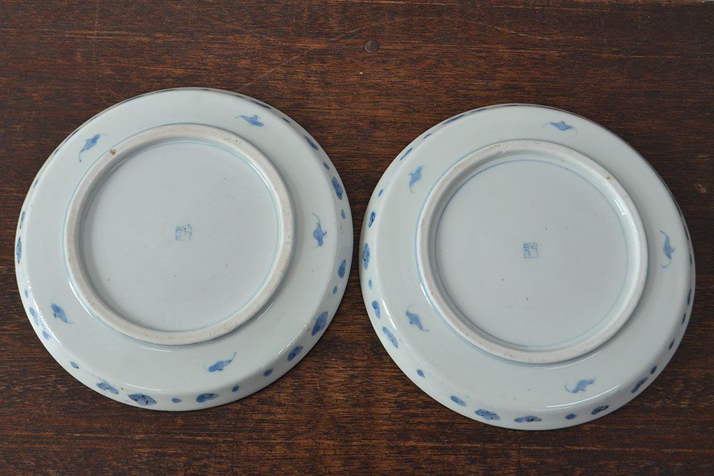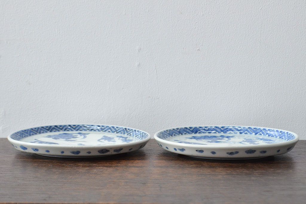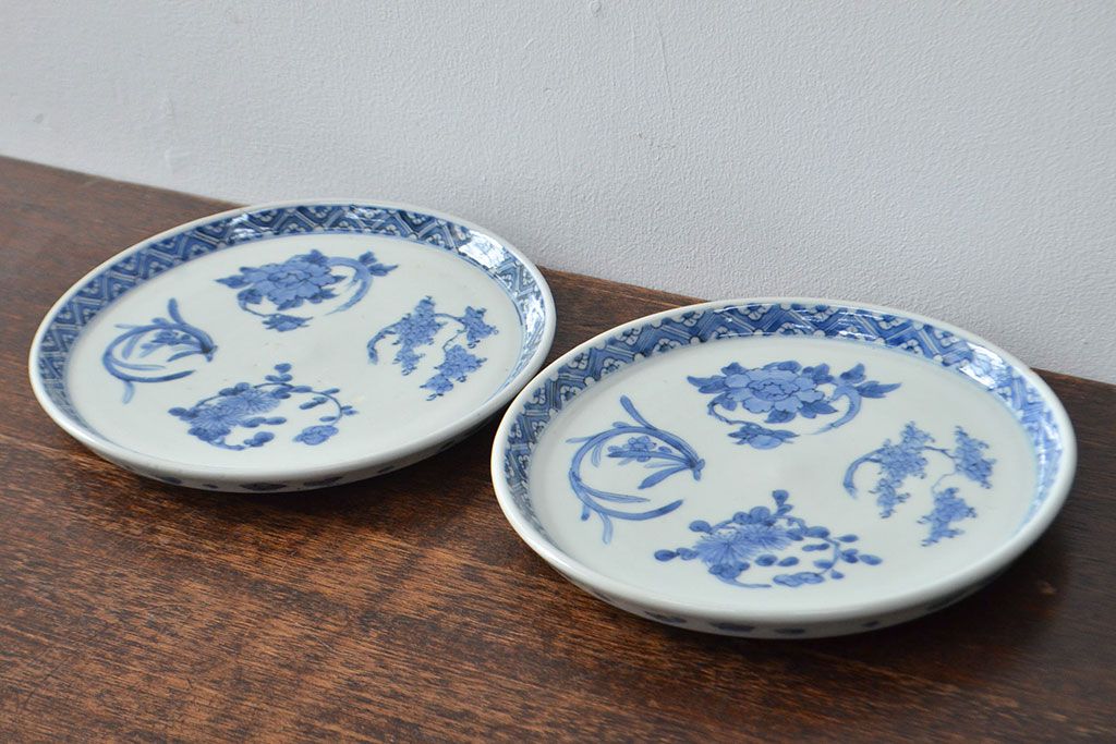 ラフジュ工房> 和食器・茶道具 > 江戸期 古伊万里 四花文染付 六寸皿2枚セット(和食器、中皿)(R-052070)