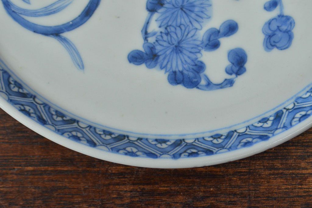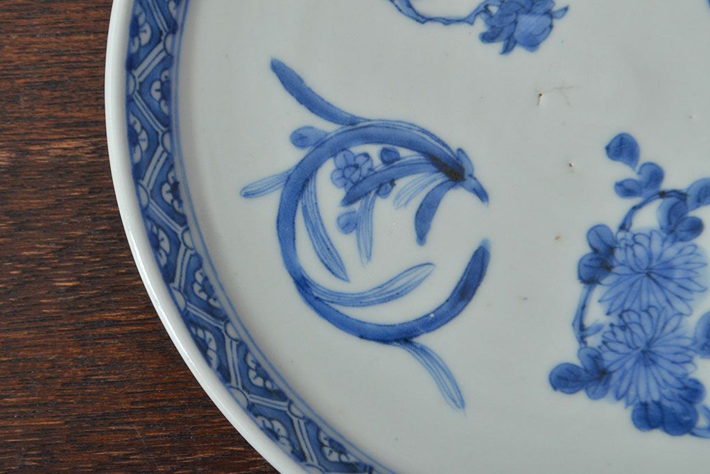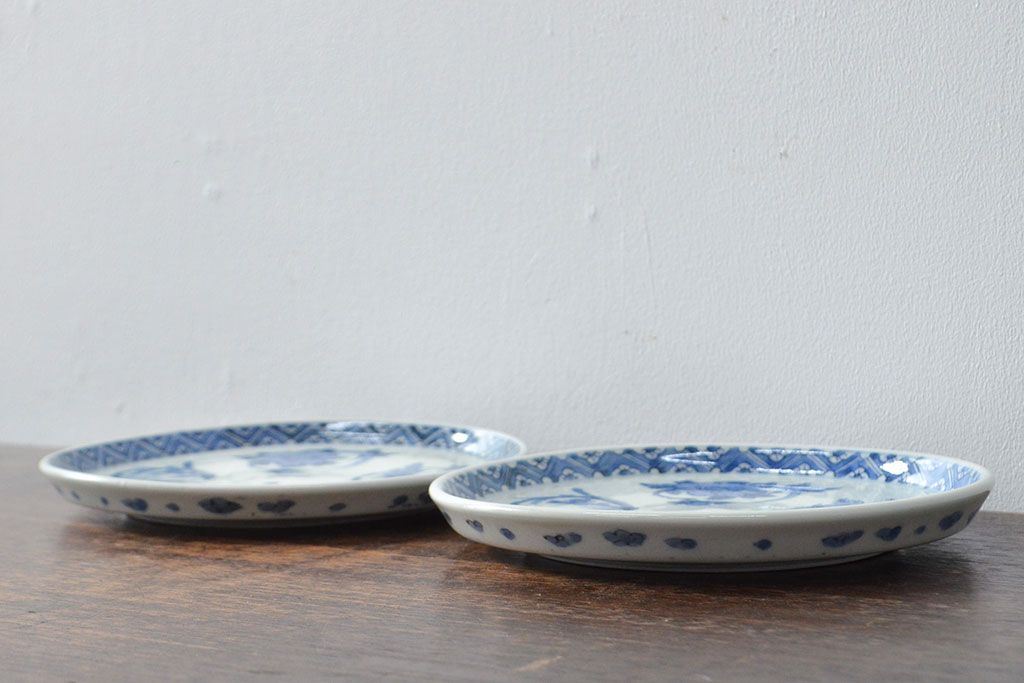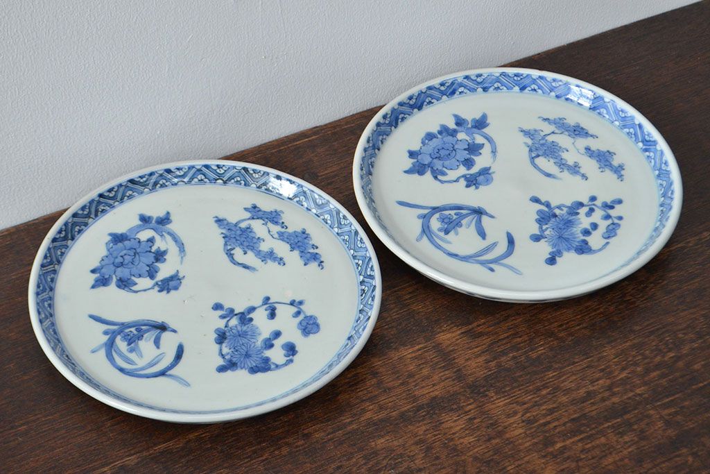 江戸期 古伊万里 四花文染付 六寸皿2枚セット(和食器、中皿)(R-052070)