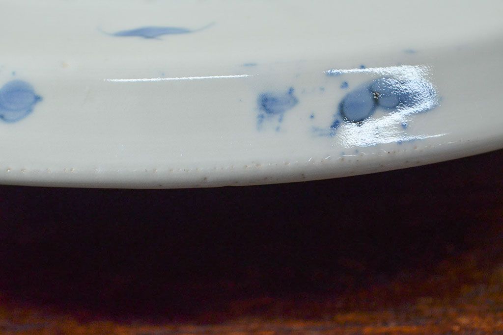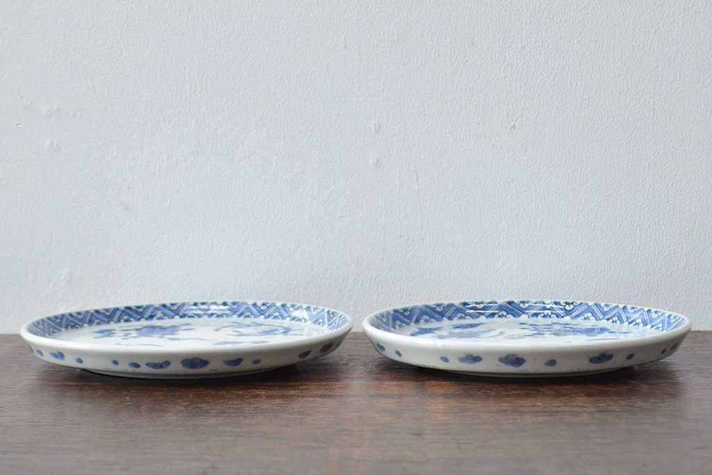 江戸期 古伊万里 四花文染付 六寸皿2枚セット(和食器、中皿)(R-052071)