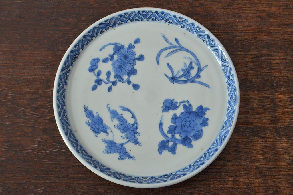 ラフジュ工房> 和食器・茶道具 > 江戸期 古伊万里 四花文染付 六寸皿2枚セット(和食器、中皿)(R-052071)
