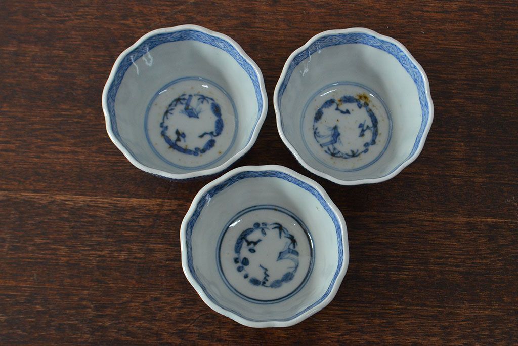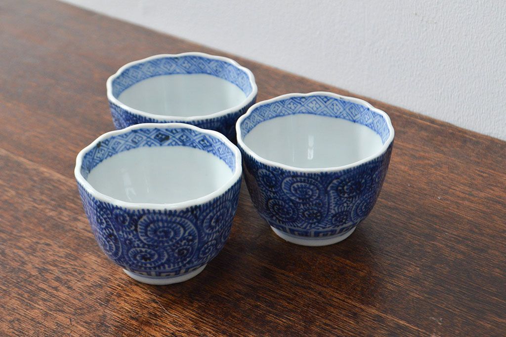 幕末〜明治 伊万里焼 蛸唐草文染付 蕎麦猪口3個セット(和食器)(R-052076)