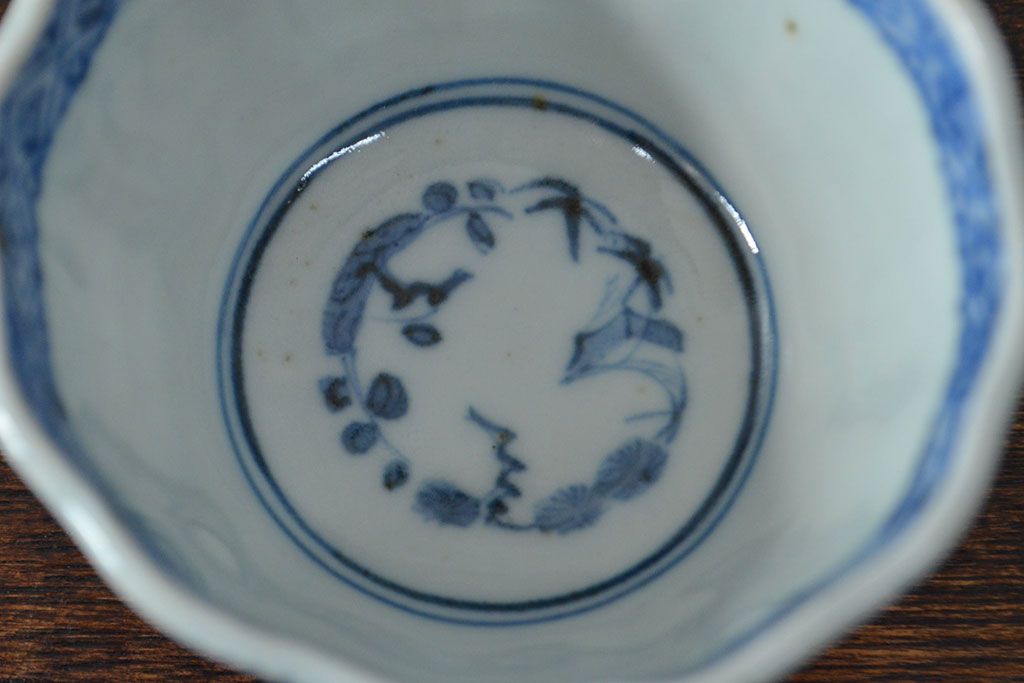 ラフジュ工房> 伝統工芸品> 伊万里焼 > 幕末〜明治 伊万里焼 蛸唐草文染付 蕎麦猪口3個セット(和食器)(R-052076)