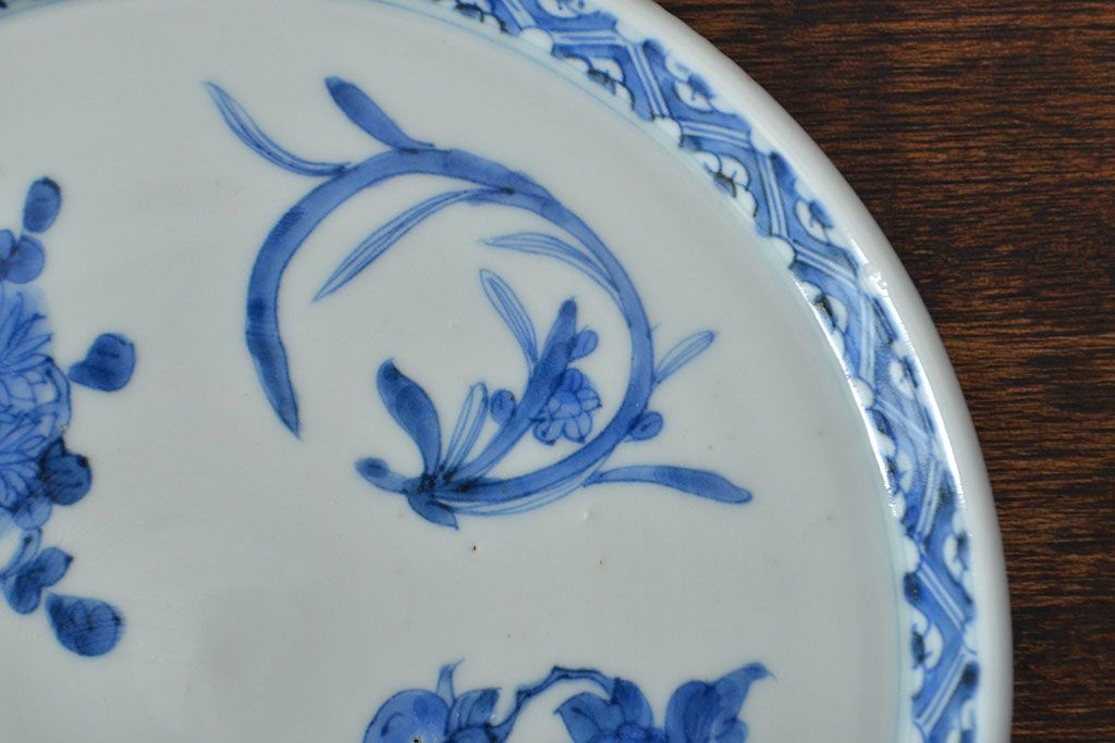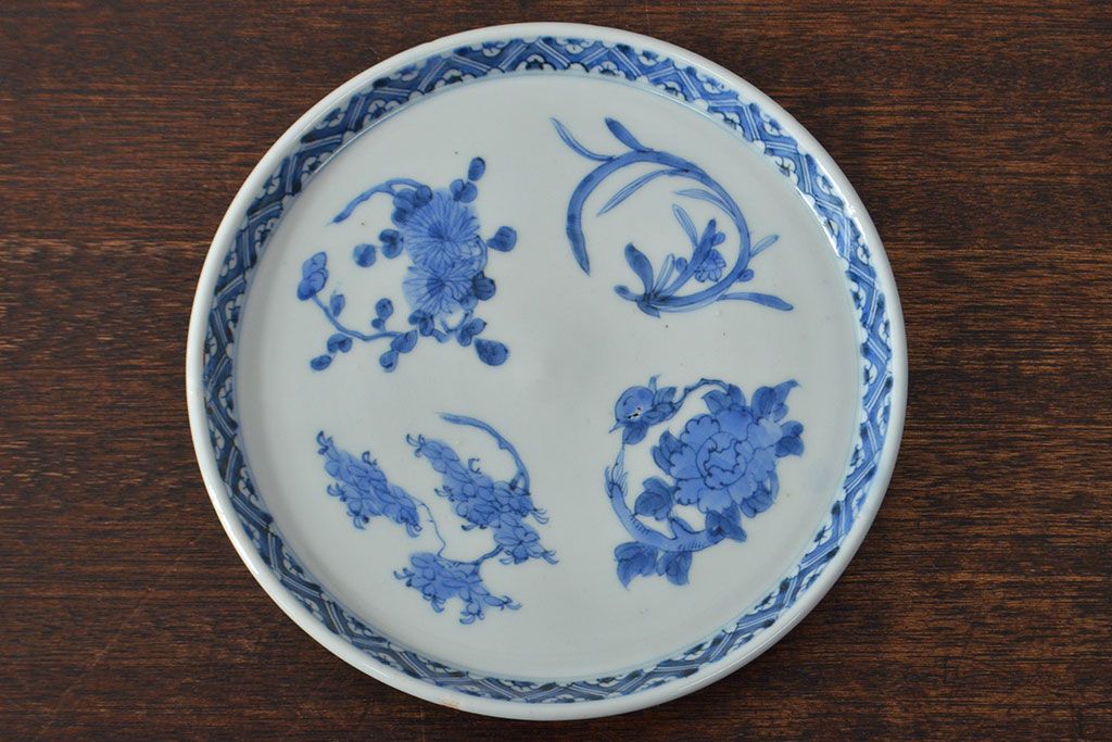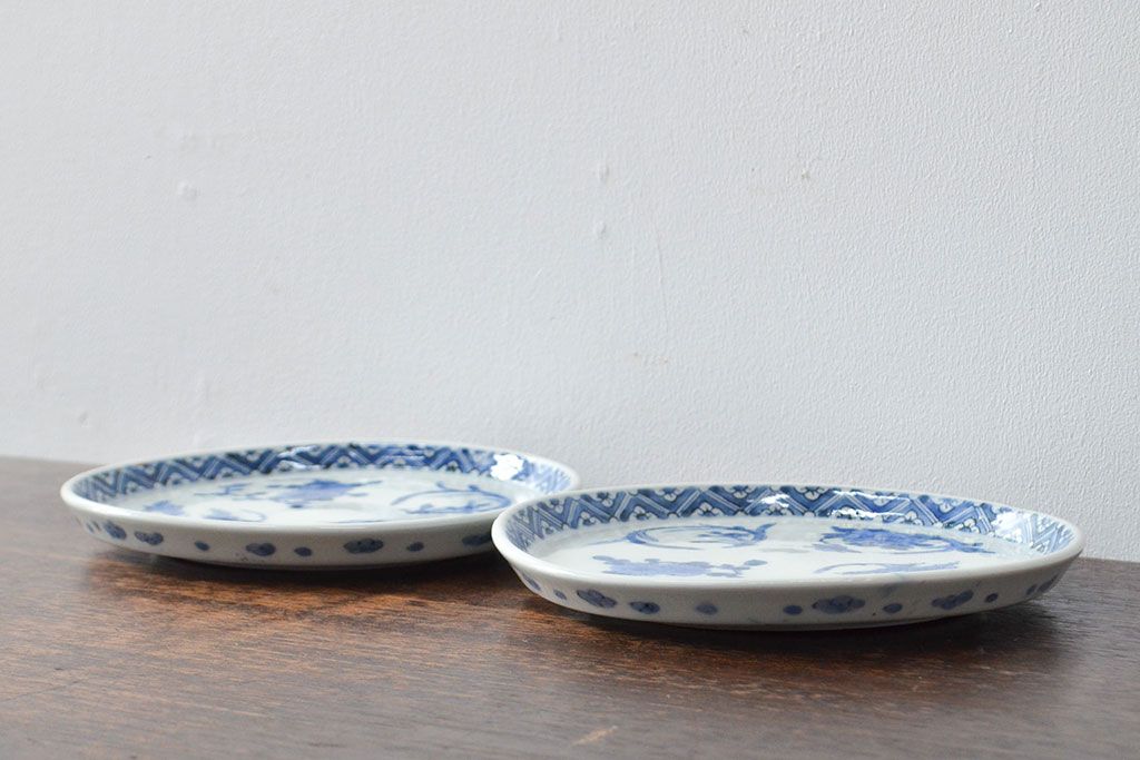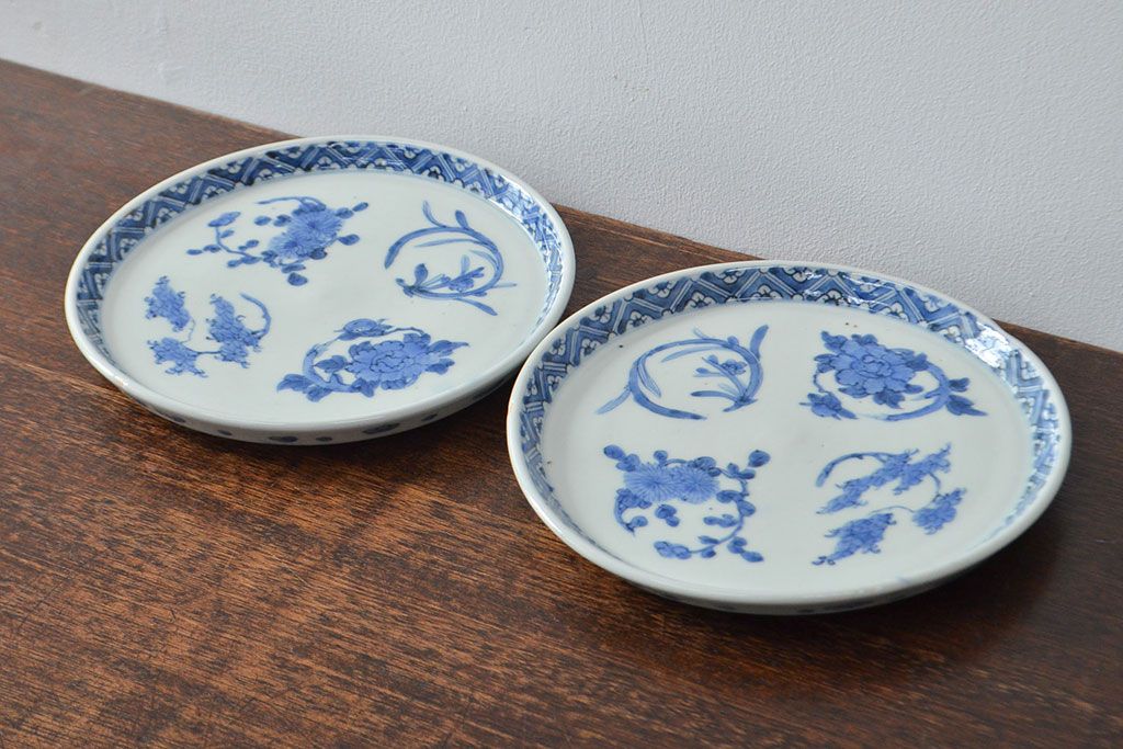 ラフジュ工房> 和食器・茶道具 > 江戸期 古伊万里 四花文染付 六寸皿2枚セット(和食器、中皿)(R-052077)