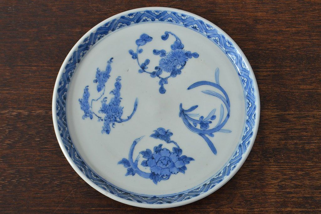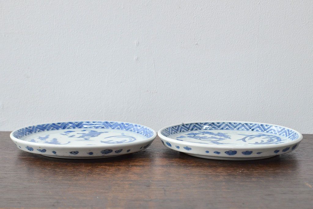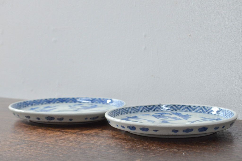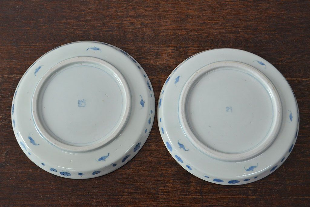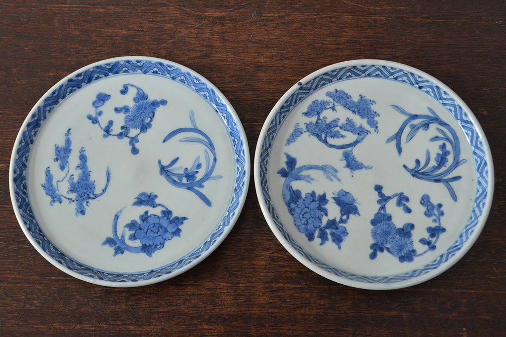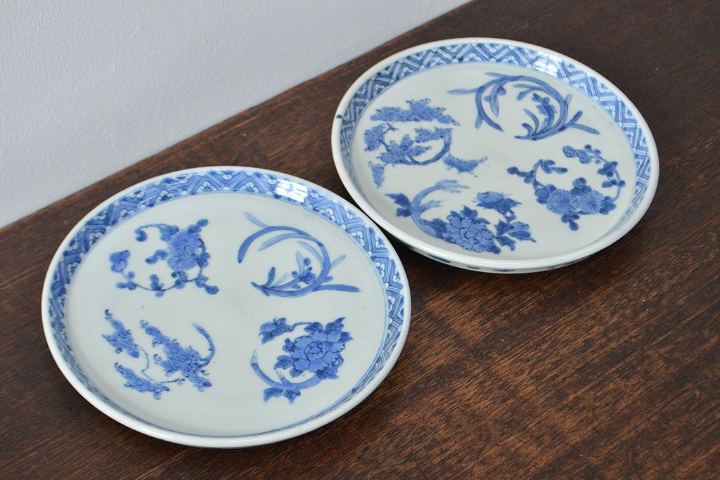 ラフジュ工房> 和食器・茶道具 > 江戸期 古伊万里 四花文染付 六寸皿2枚セット(和食器、中皿)(R-052078)