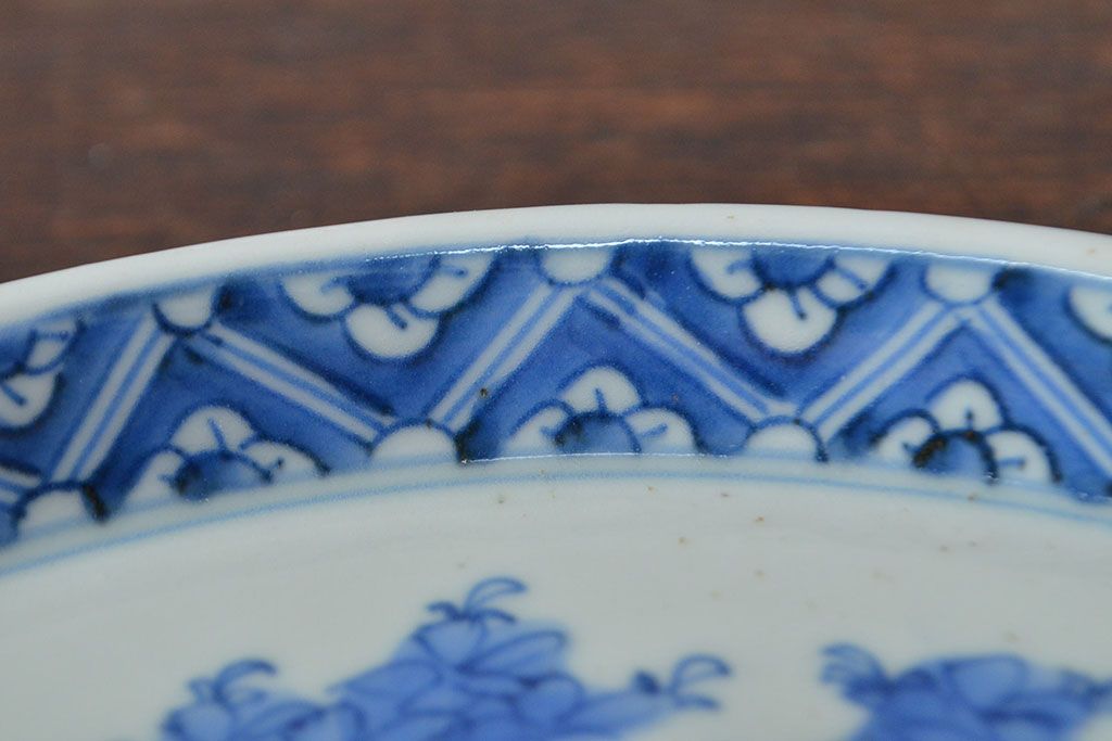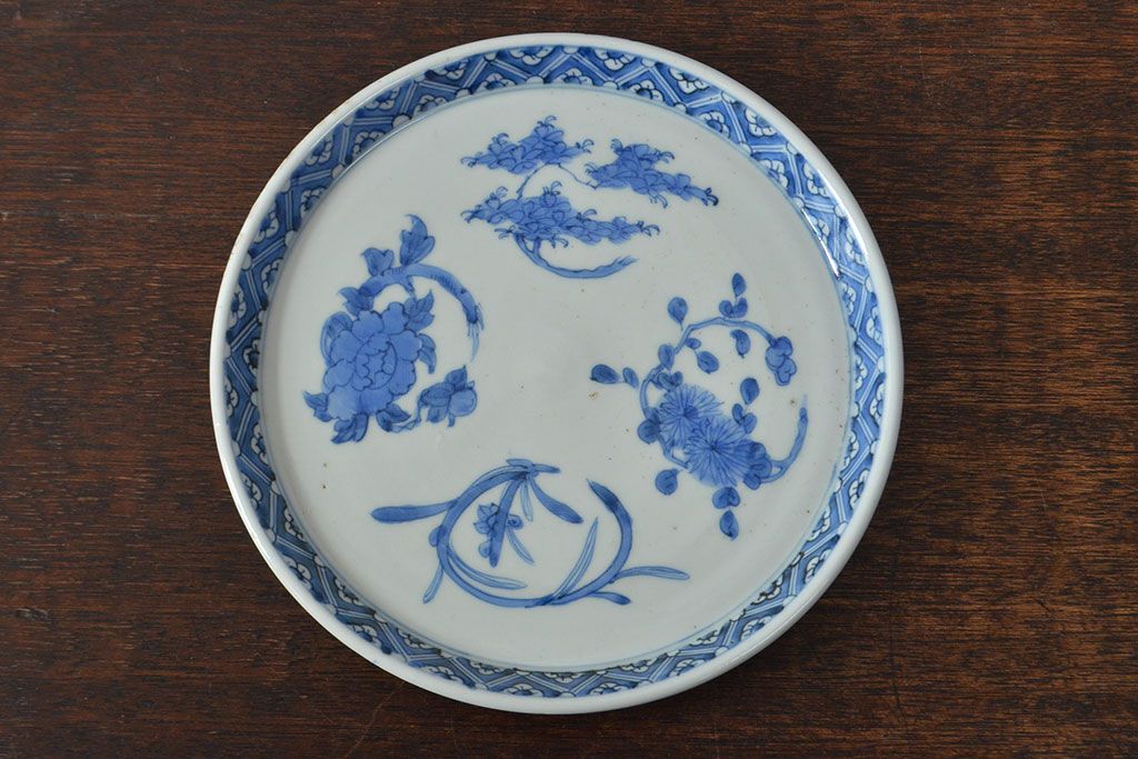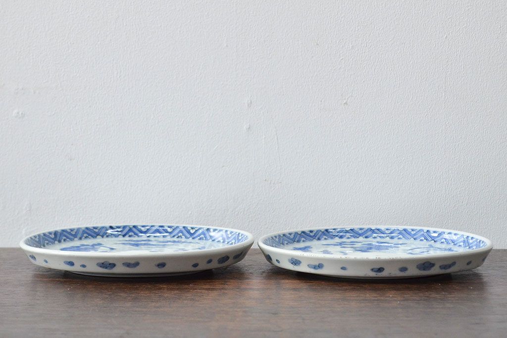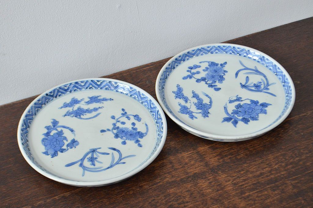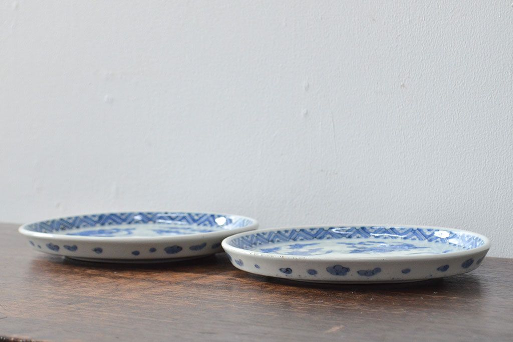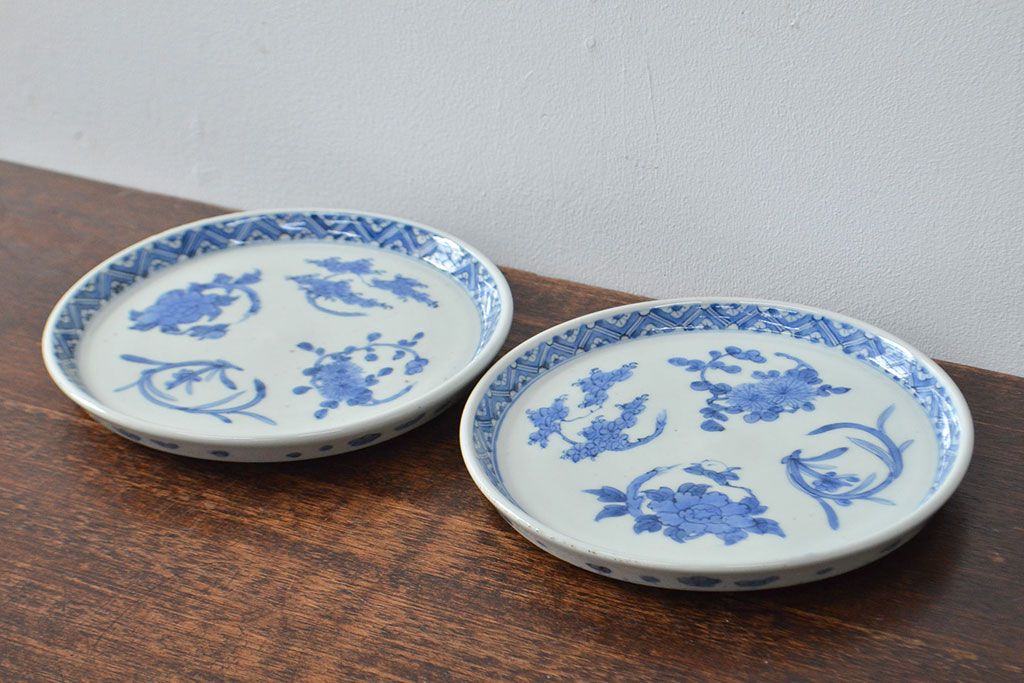 ラフジュ工房> 和食器・茶道具 > 江戸期 古伊万里 四花文染付 六寸皿2枚セット(和食器、中皿)(R-052079)