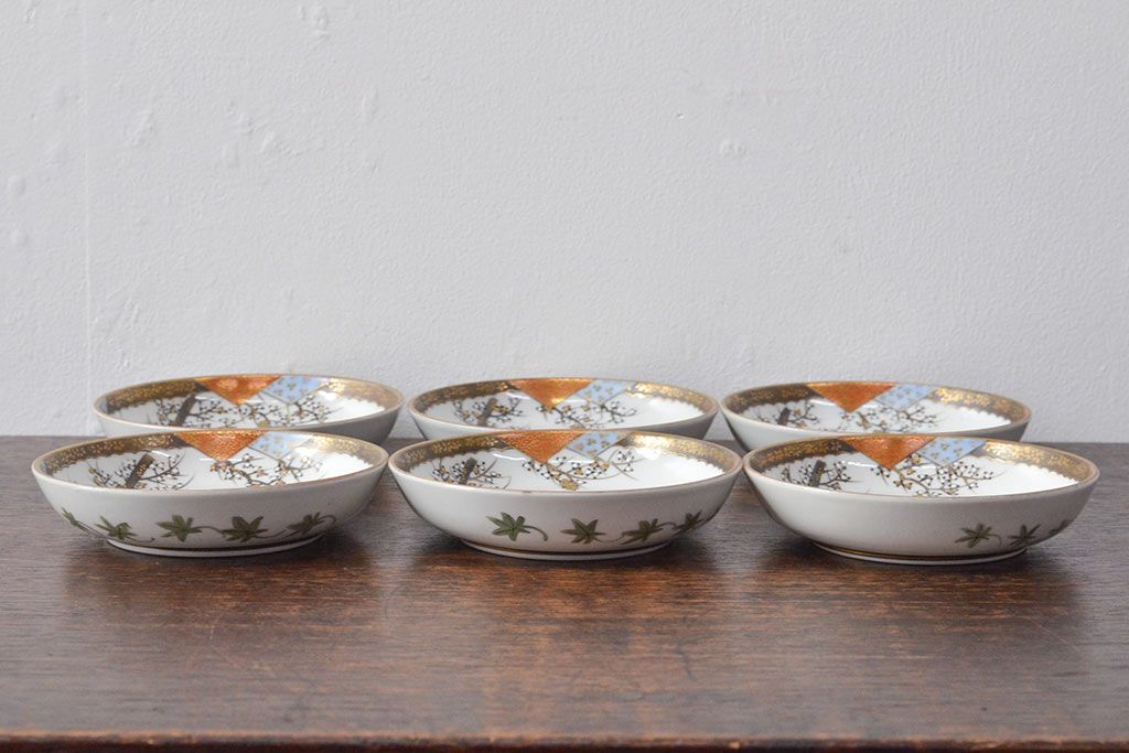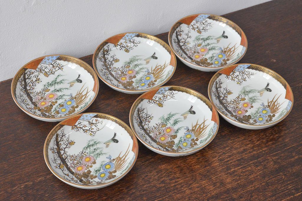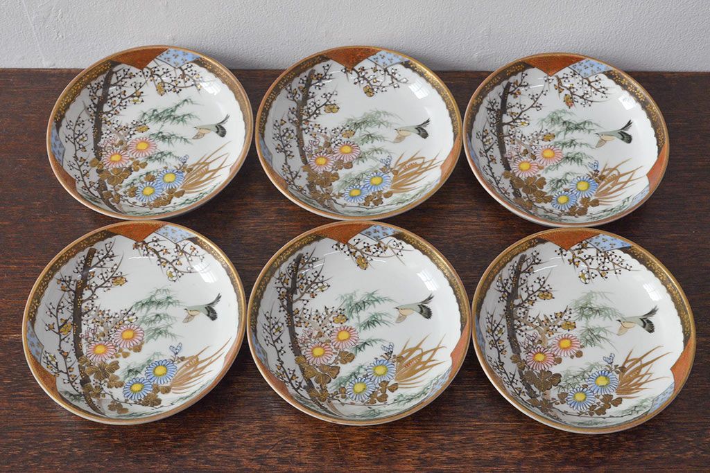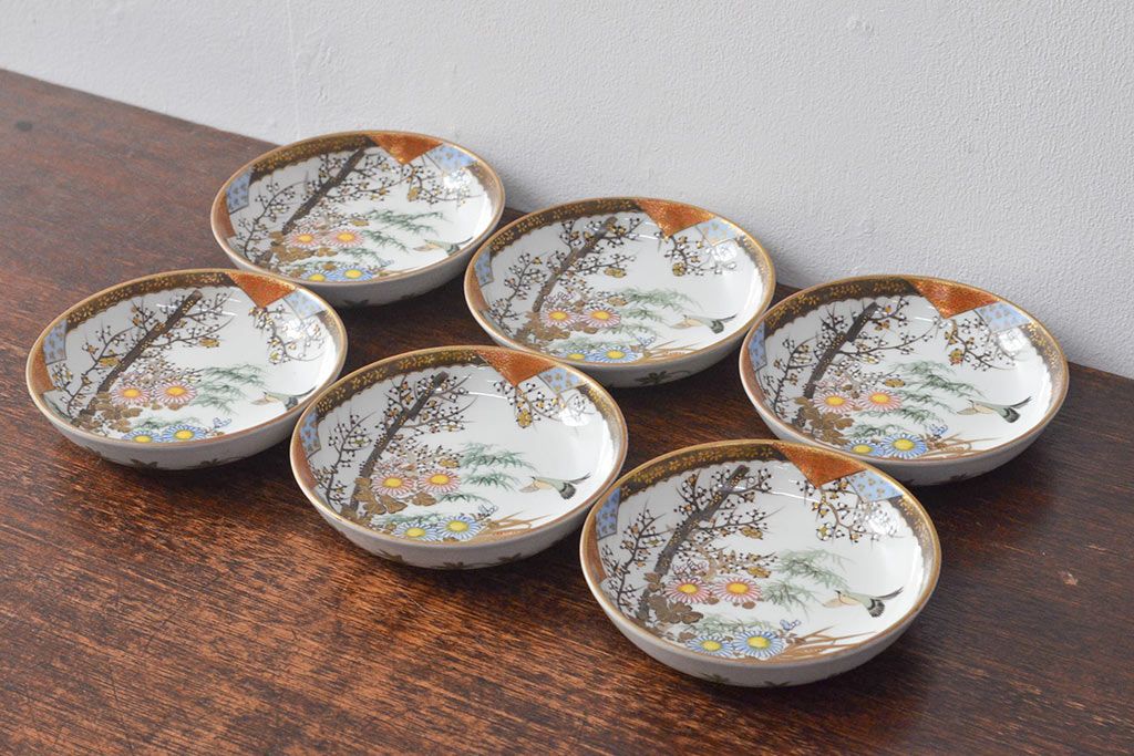 ラフジュ工房> 和食器・茶道具 > 明治〜大正 九谷焼 花鳥図 色絵 小皿6枚セット(和食器)(R-052091)