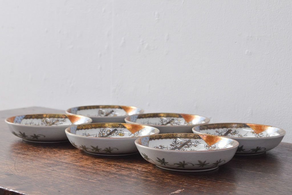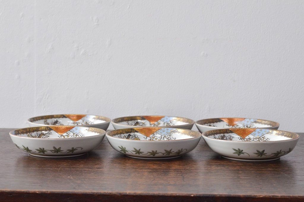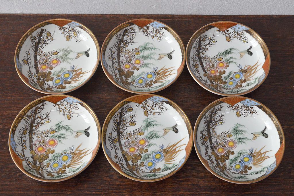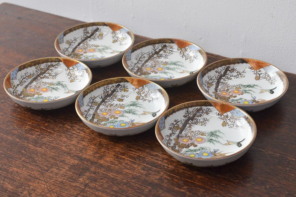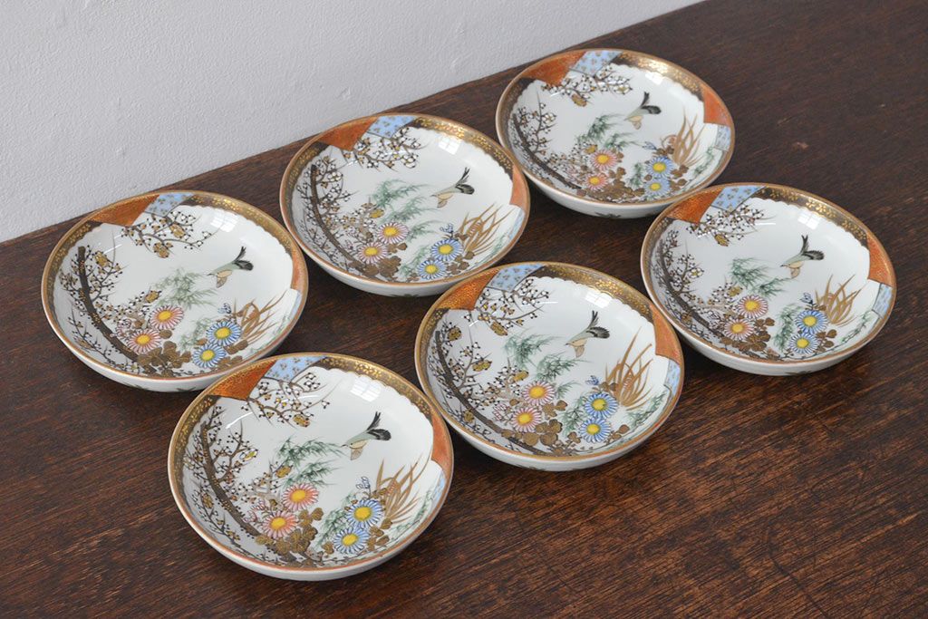 ラフジュ工房> 和食器・茶道具 > 明治〜大正 九谷焼 花鳥図 色絵 小皿6枚セット(和食器)(R-052093)