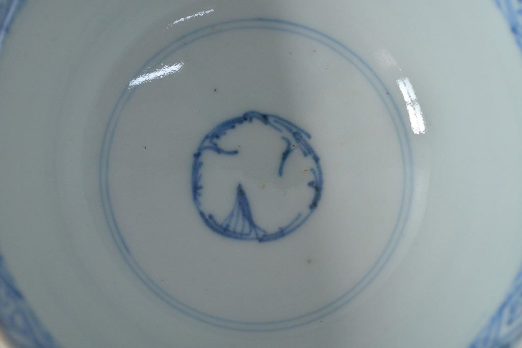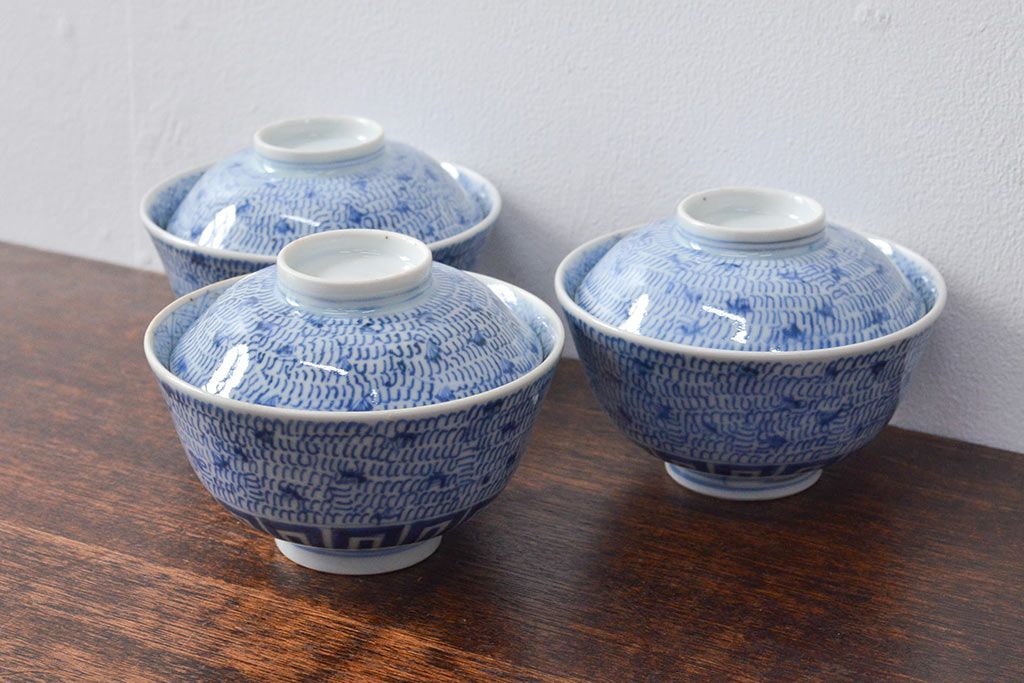 ラフジュ工房> 骨董・美術品> 骨董-陶磁器 > 江戸期 古伊万里 染付微塵唐草 蓋茶碗3客セット(和食器)(R-052124)