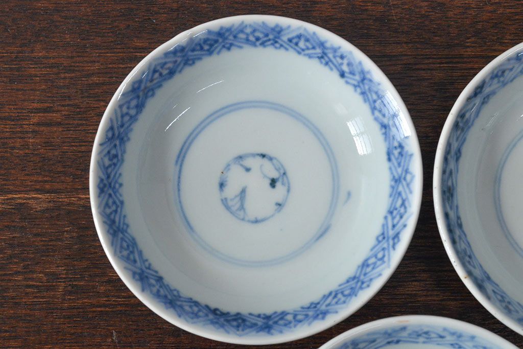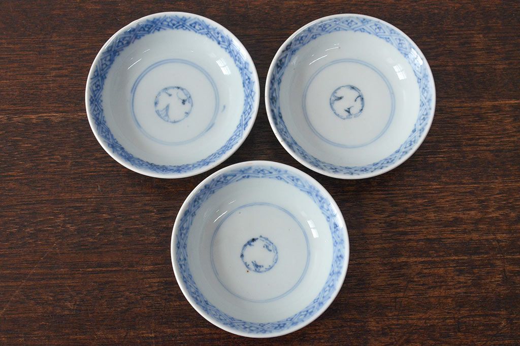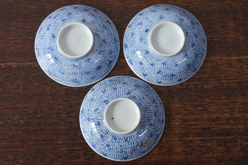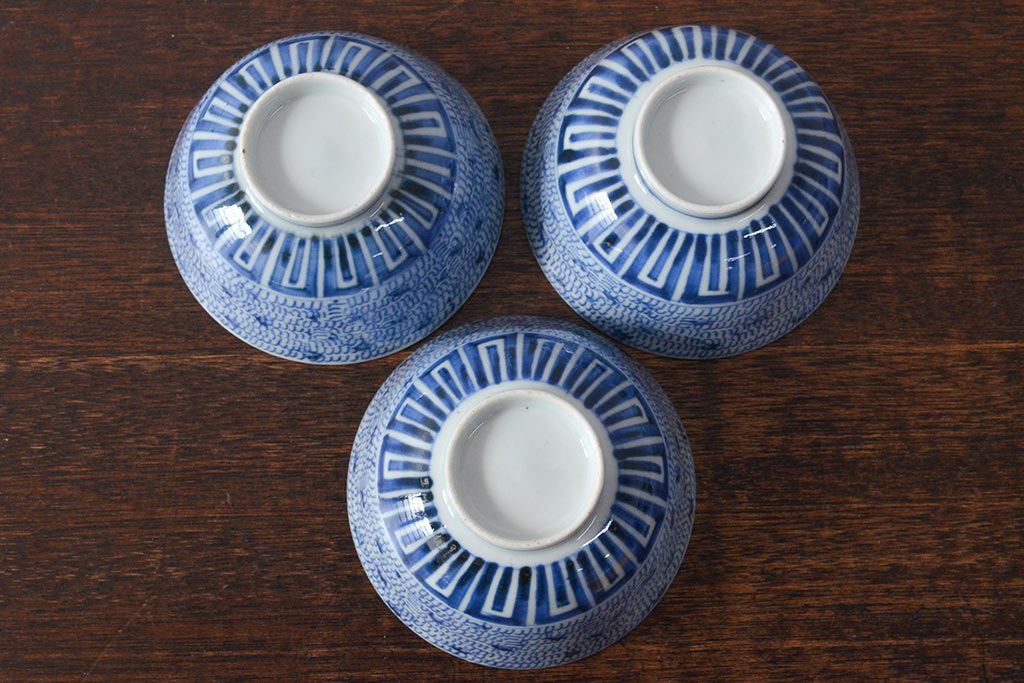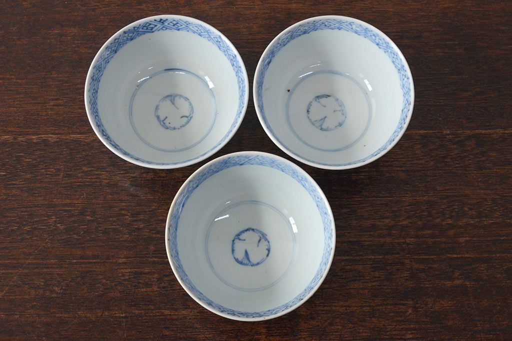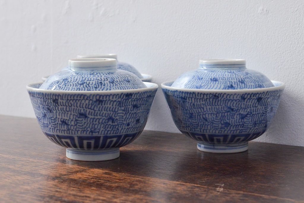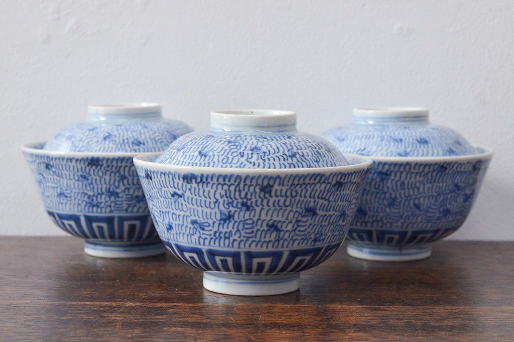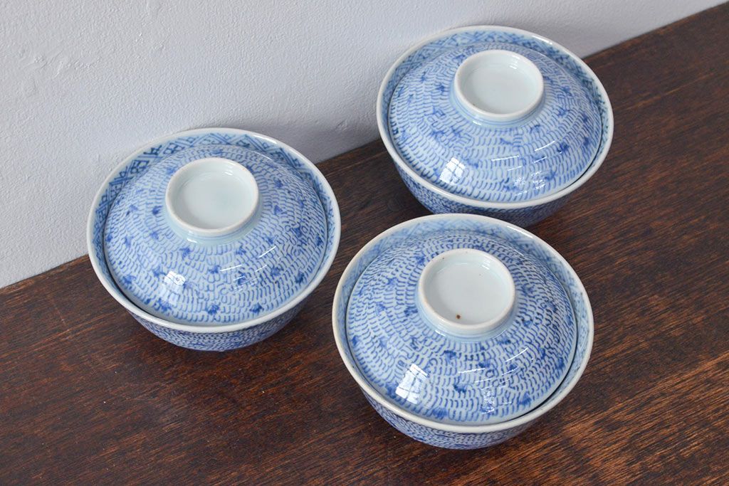 ラフジュ工房> 和食器・茶道具 > 江戸期 古伊万里 染付微塵唐草 蓋茶碗3客セット(和食器)(R-052124)