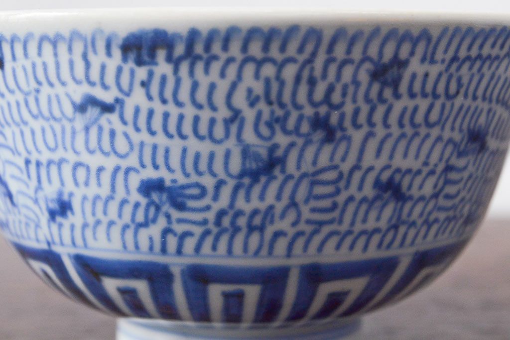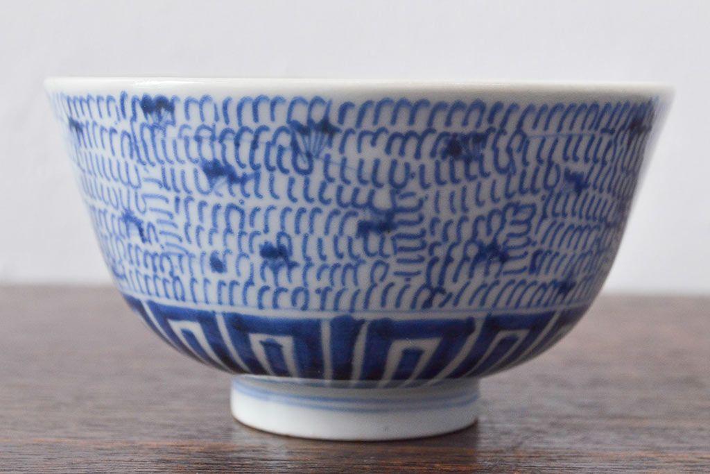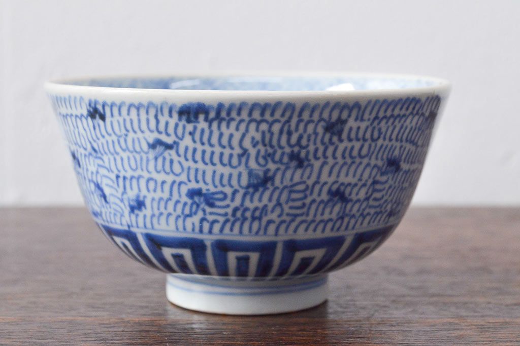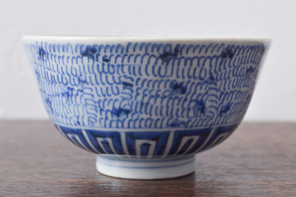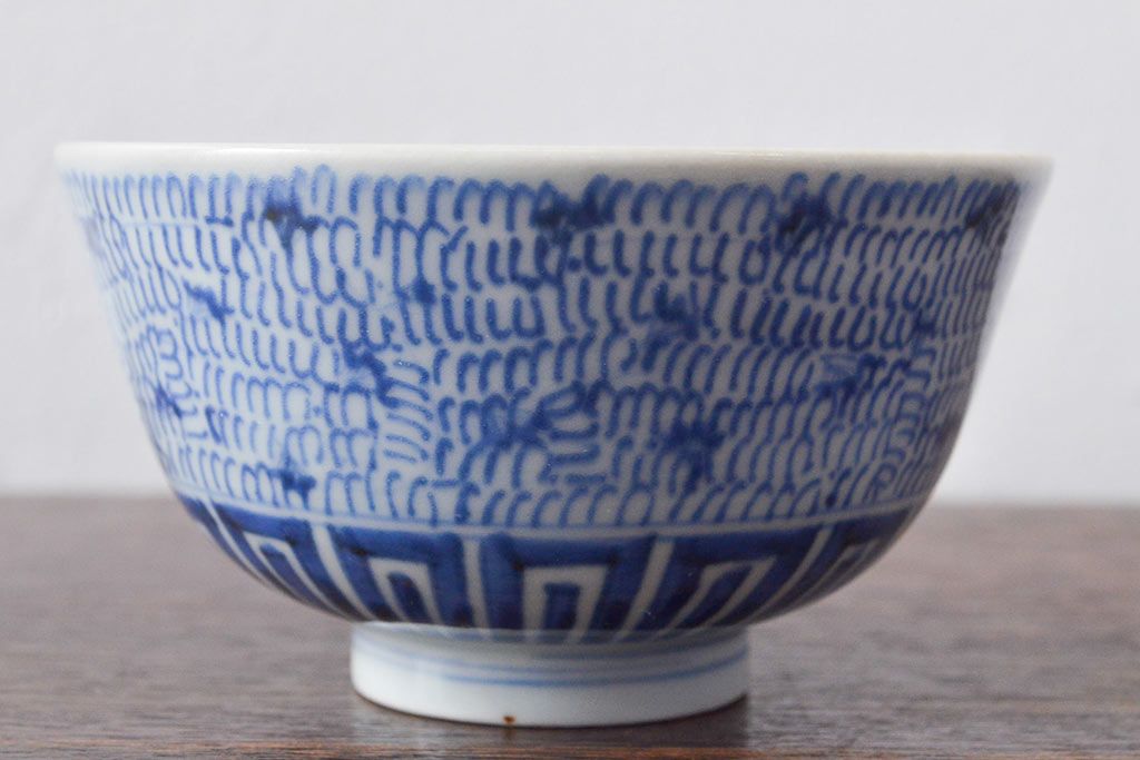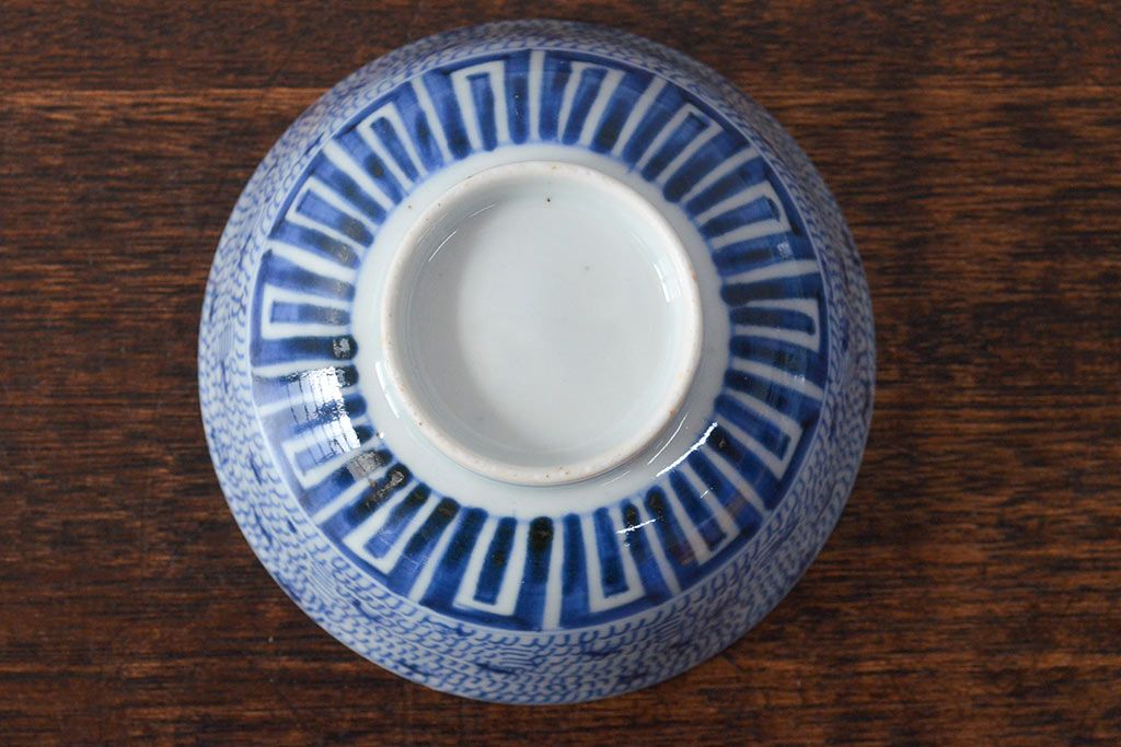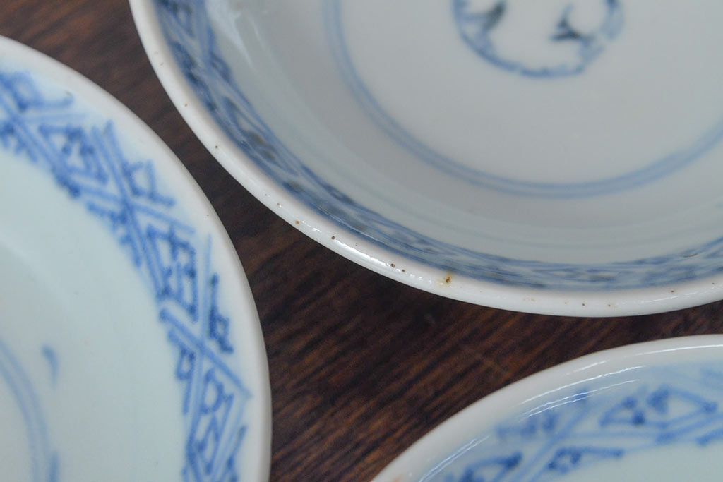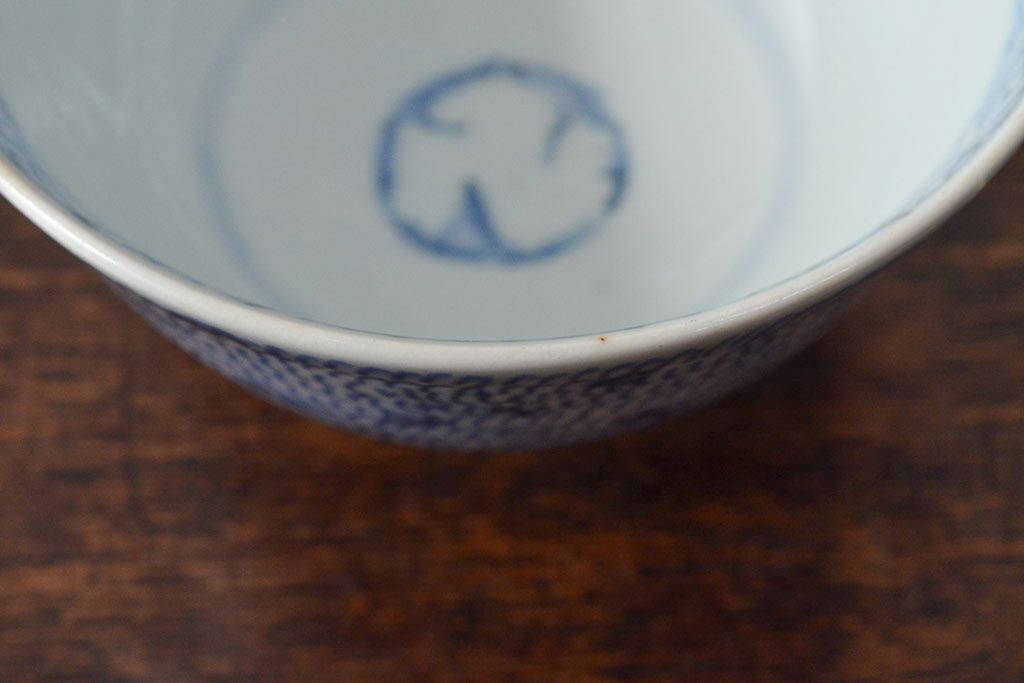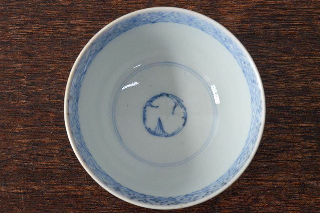 ラフジュ工房> 和食器・茶道具 > 江戸期 古伊万里 染付微塵唐草 蓋茶碗3客セット(和食器)(R-052124)