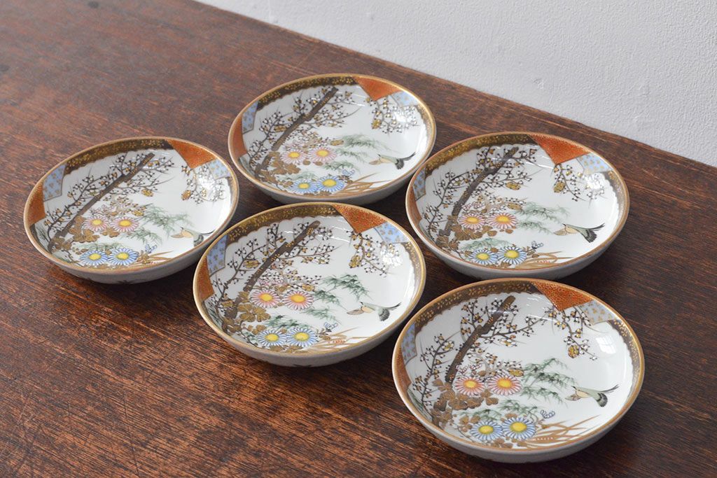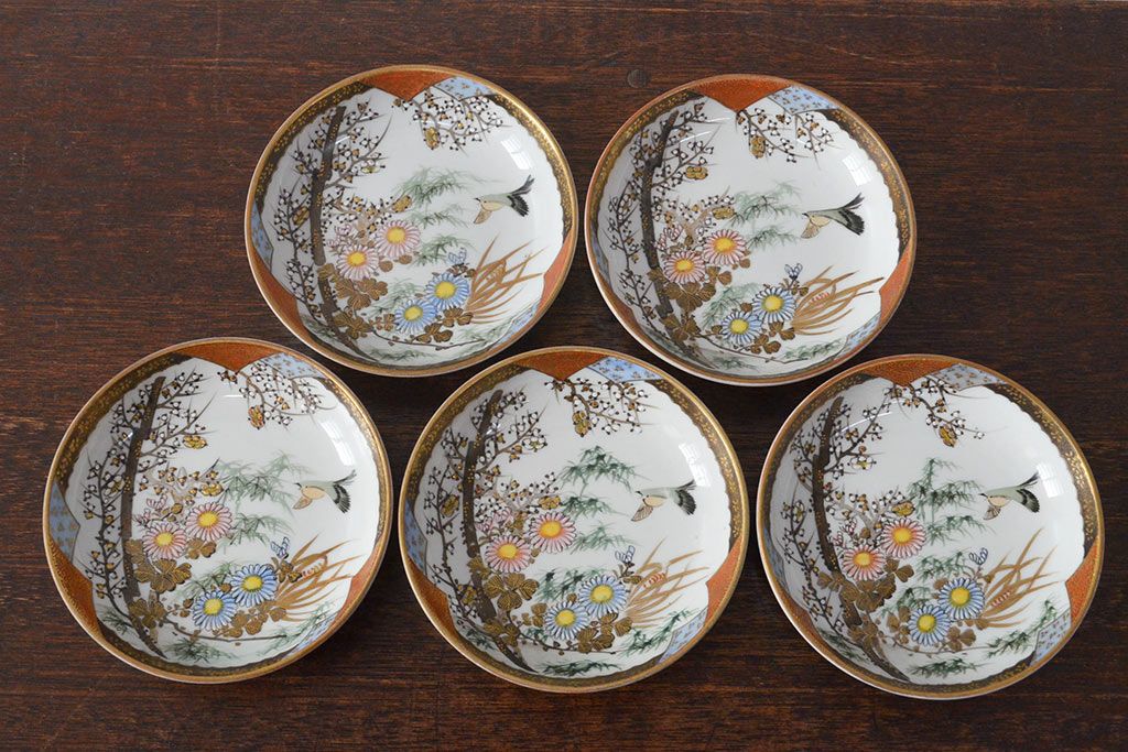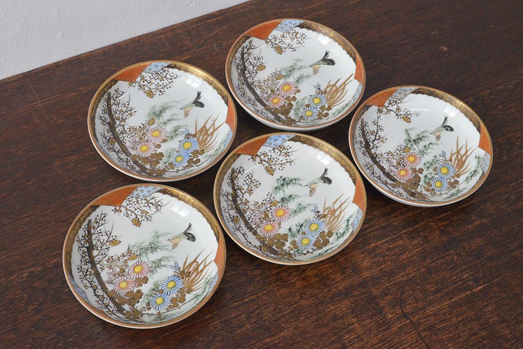 ラフジュ工房> 和食器・茶道具 > 明治〜大正 九谷焼 花鳥図 色絵 小皿5枚セット(和食器)(R-052127)