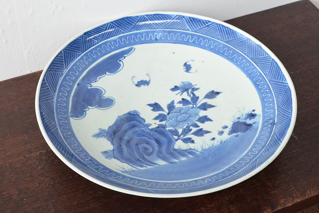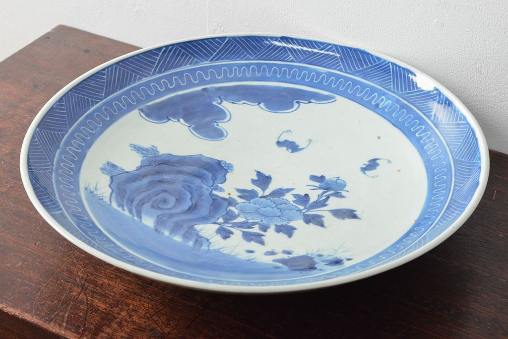 ラフジュ工房> 和食器・茶道具 > 江戸期 古伊万里 花文染付 一尺三寸 大皿(和食器)(R-052131)