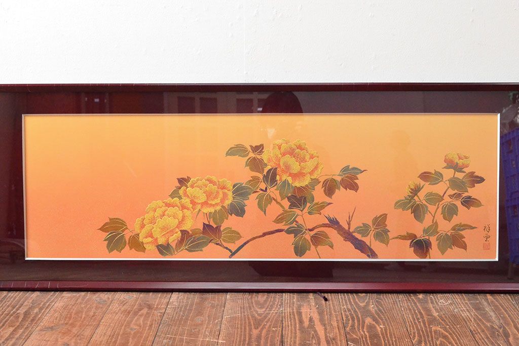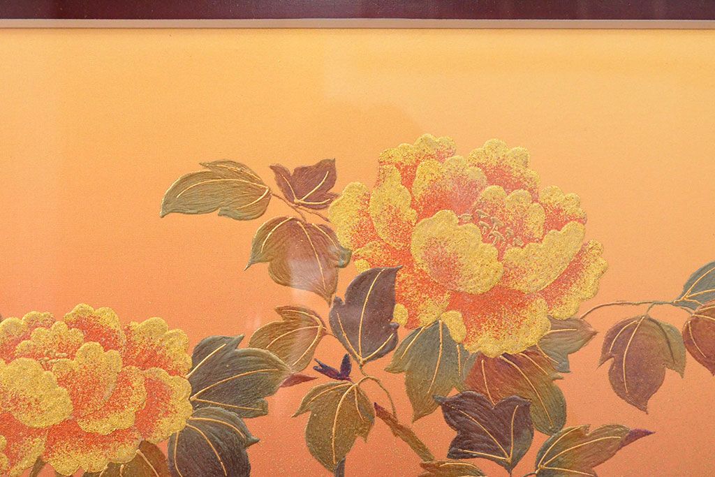 祥雲銘 牡丹図 額絵(額装、扁額)(R-052166)