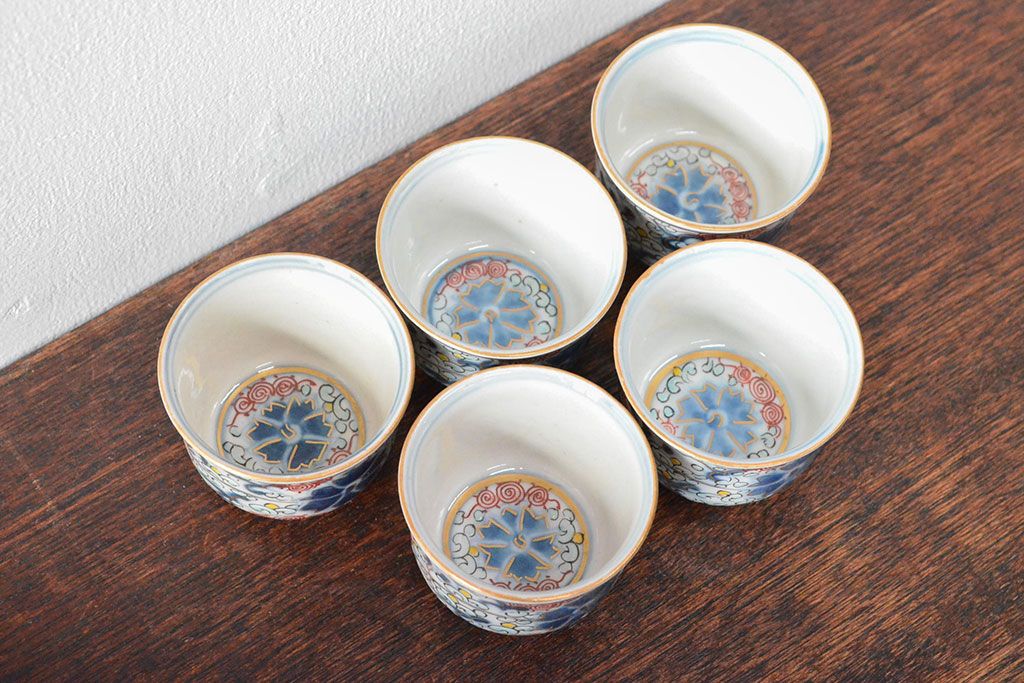 ラフジュ工房> 骨董・美術品> 骨董-陶磁器 > 大清光緒年製 色絵 猪口5客セット(古伊万里、中国?)(R-052169)