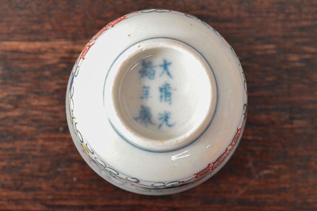 大清光緒年製 色絵 猪口5客セット(古伊万里、中国?)(R-052169)