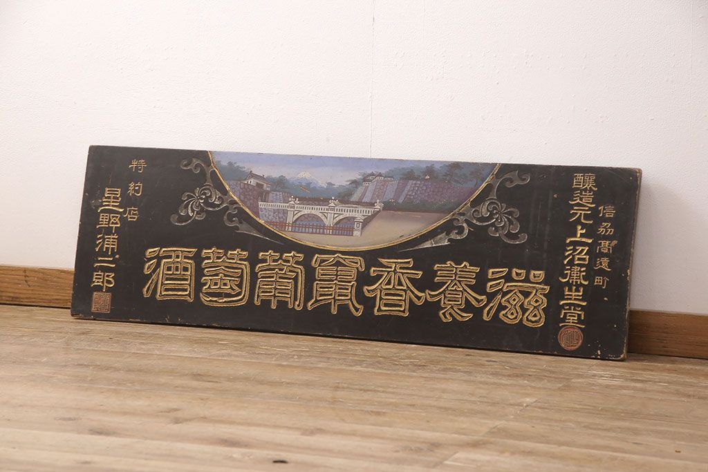 明治期 滋養香竄葡萄酒 木製看板(ワイン広告、酒屋、ディスプレイ)(R-052142)