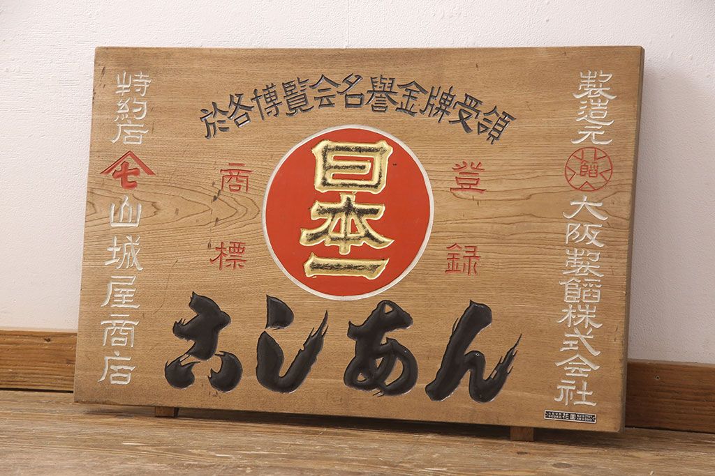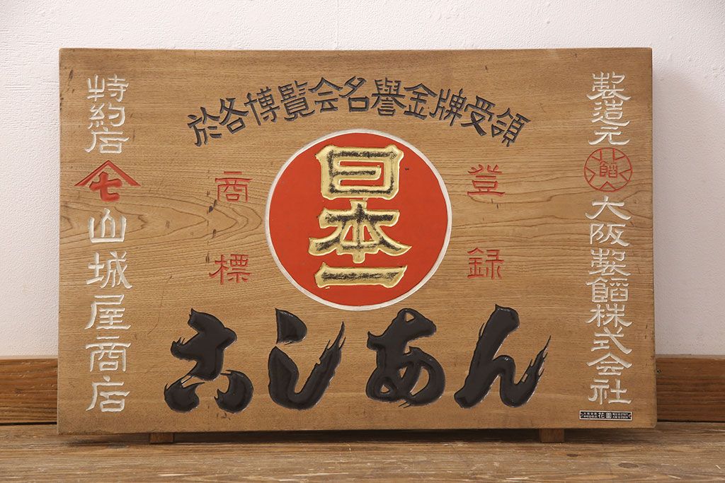 昭和レトロ 日本一 こしあん 木製看板(山城屋、お菓子屋、和菓子屋、ディスプレイ)(R-052144)