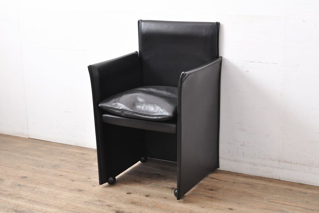 中古 美品 Cassina(カッシーナ) 401 BREAK(ブレーク) MARIO BELLINI(マリオベリーニ) キャスター付きアームチェア(ダイニングチェア、一人掛けソファ、1P)(定価約46万円)(R-051531)
