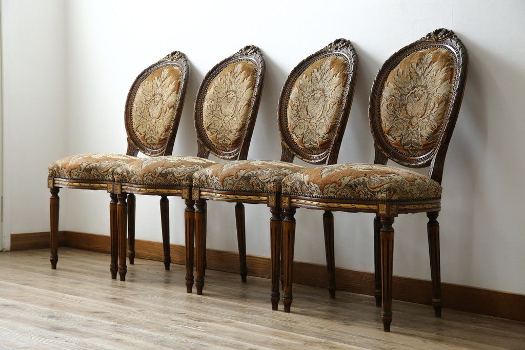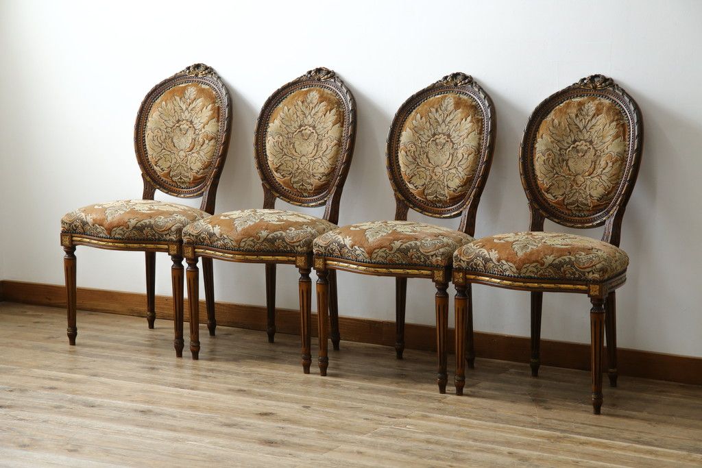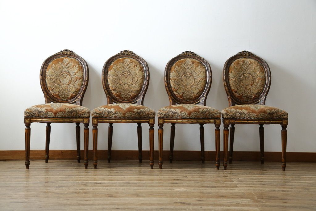 イタリアアンティーク ロココ調のデザインが優雅なダイニングチェア4脚セット(R-052401)