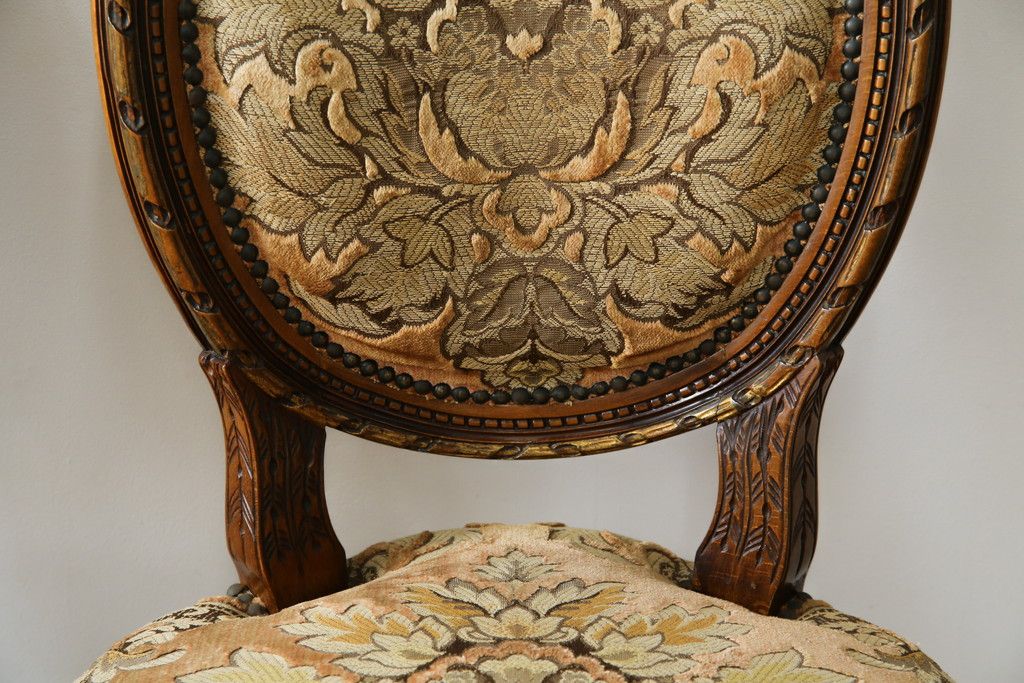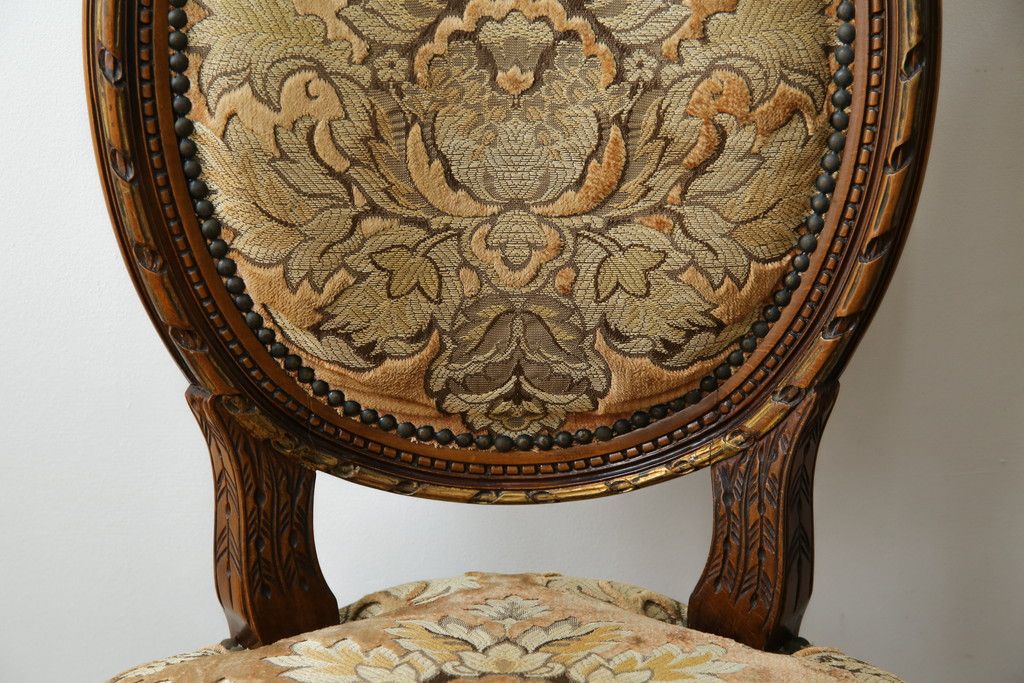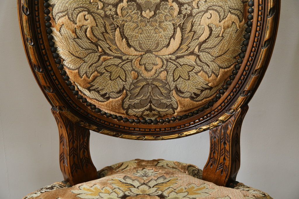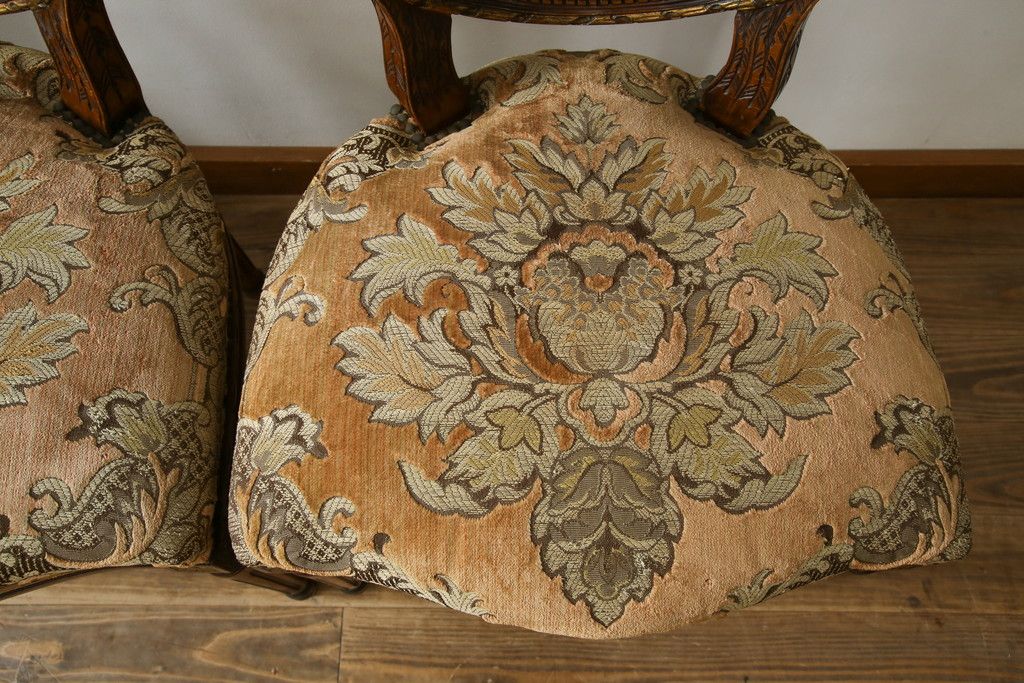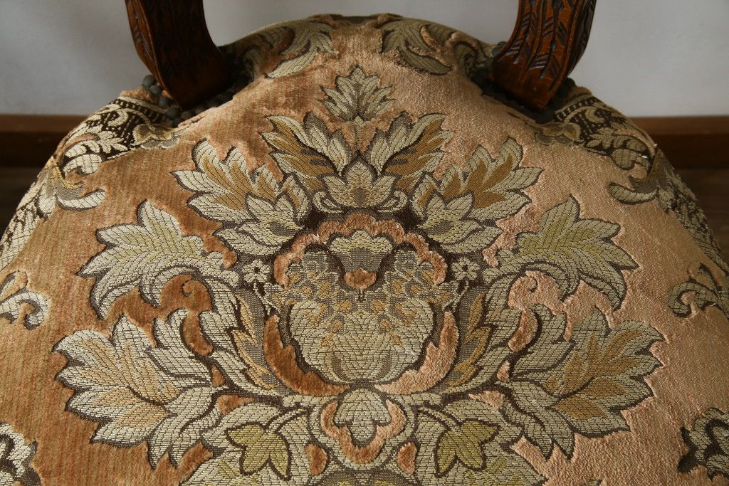 背もたれから脚に至るまで細部の細やかな彫刻、