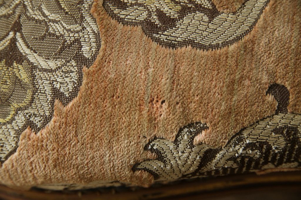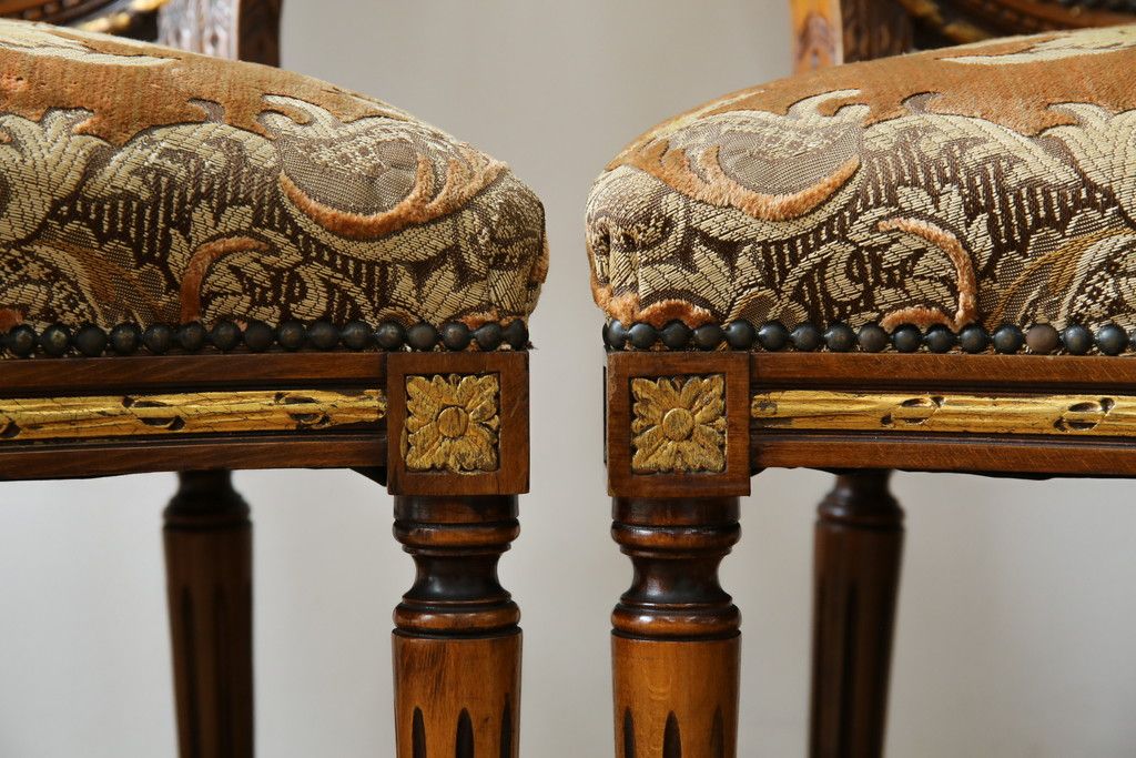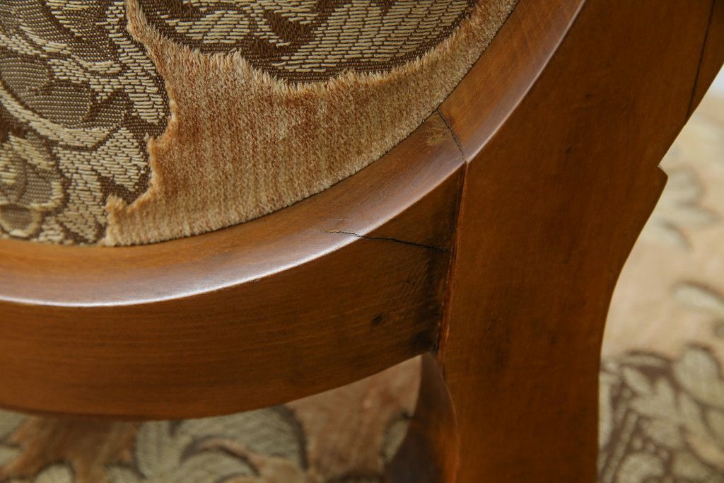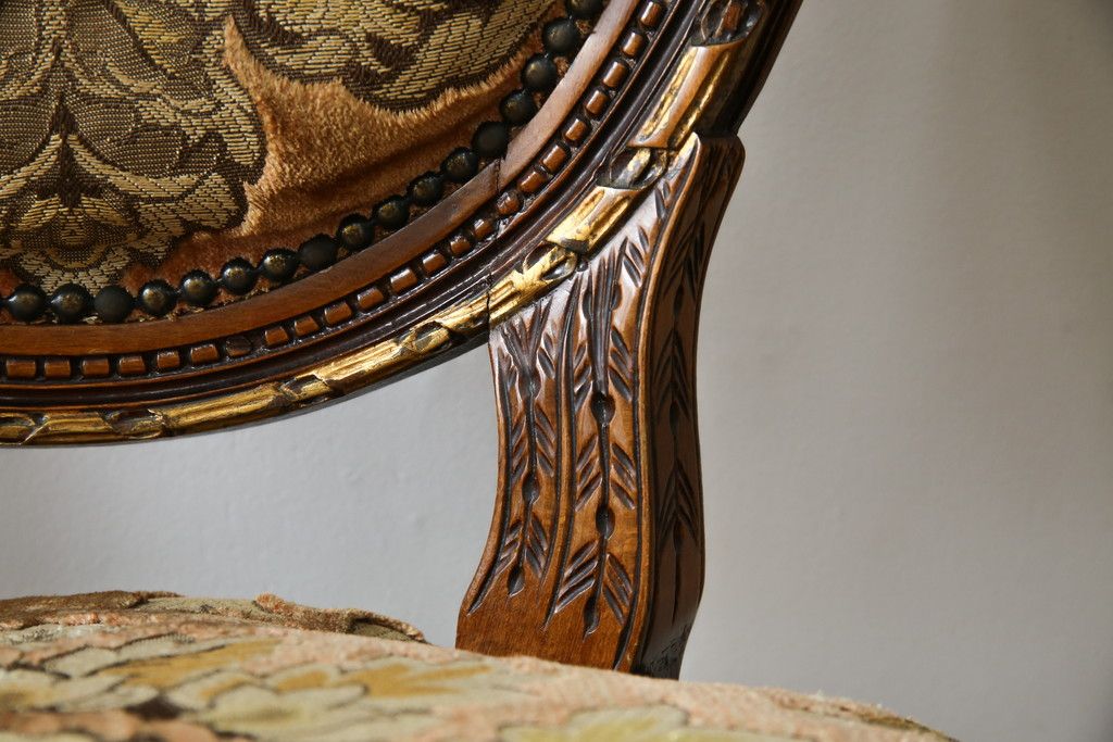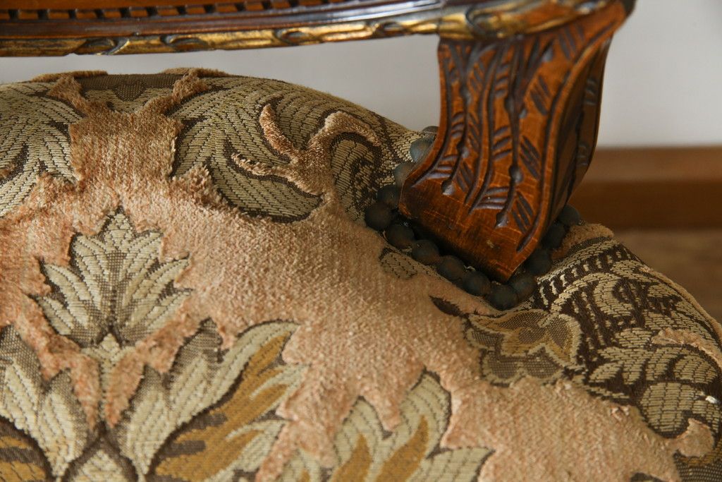 背もたれから脚に至るまで細部の細やかな彫刻、