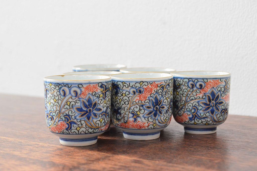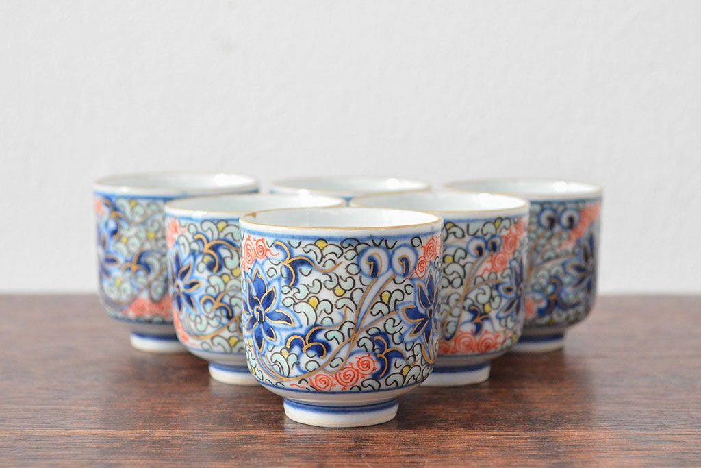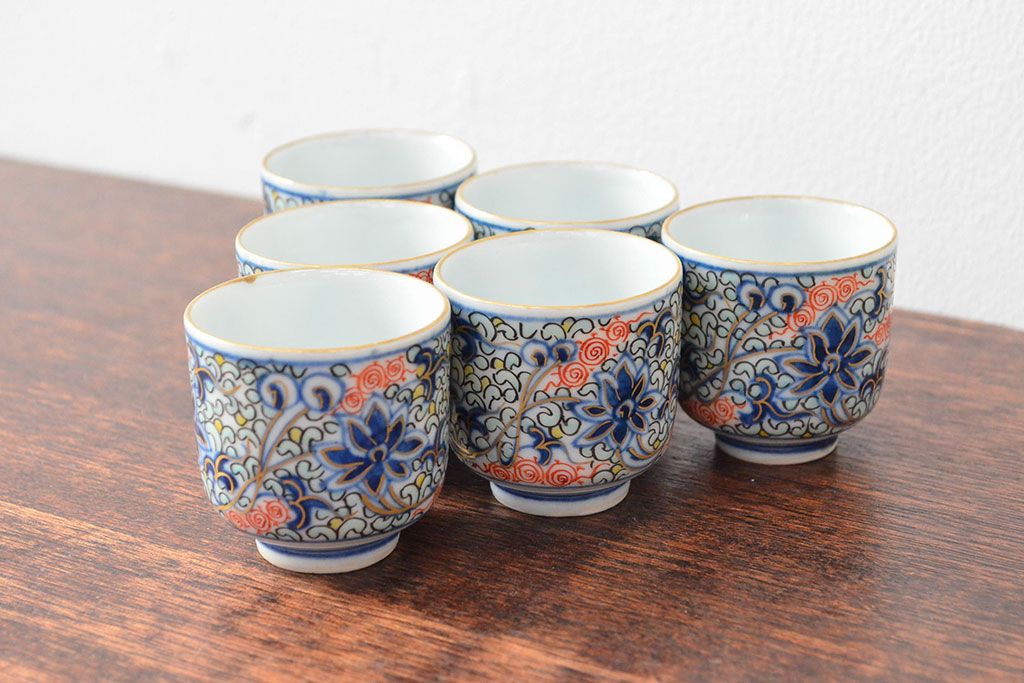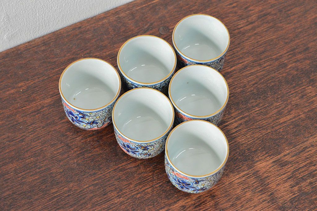 ラフジュ工房> 骨董・美術品> 中国美術 > 大清光緒年製 色絵染付猪口6客セット(伊万里、中国?)(R-052047)