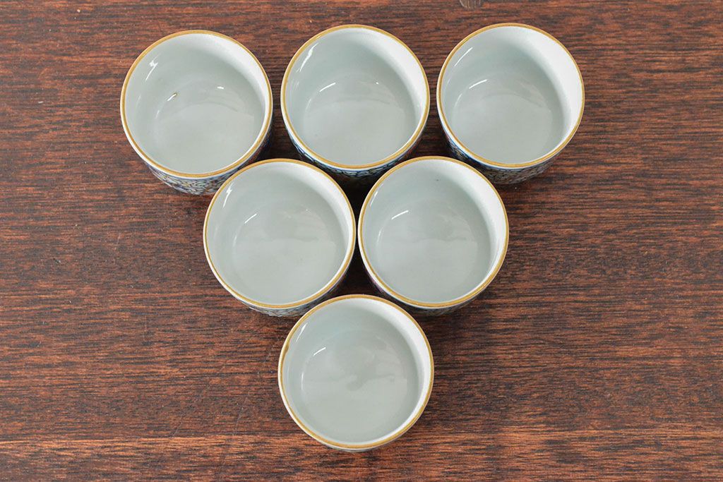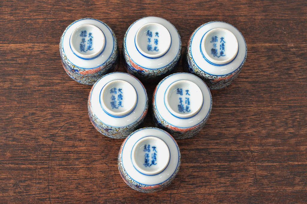 ラフジュ工房> 和食器・茶道具> 蕎麦猪口 > 大清光緒年製 色絵染付猪口6客セット(伊万里、中国?)(R-052047)
