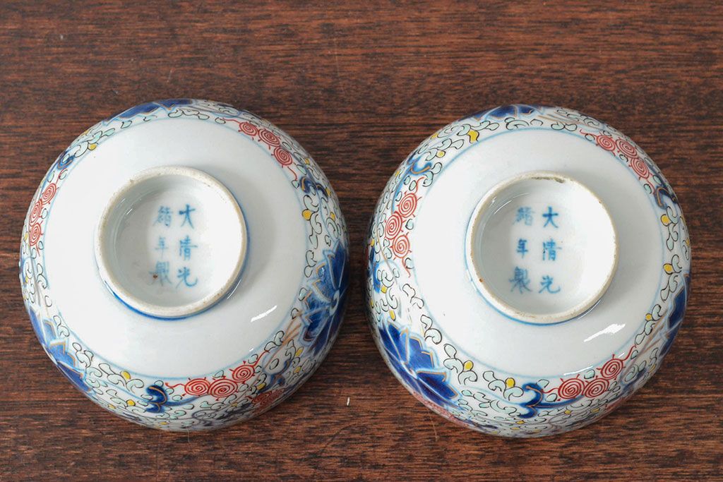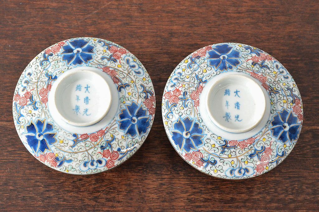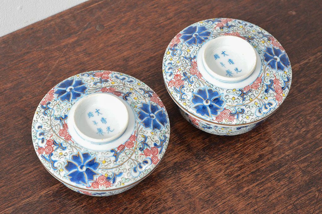 ラフジュ工房> 骨董・美術品> 中国美術 > 大清光緒年製 色絵染付蓋茶碗2客セット(伊万里、中国?)(R-052048)
